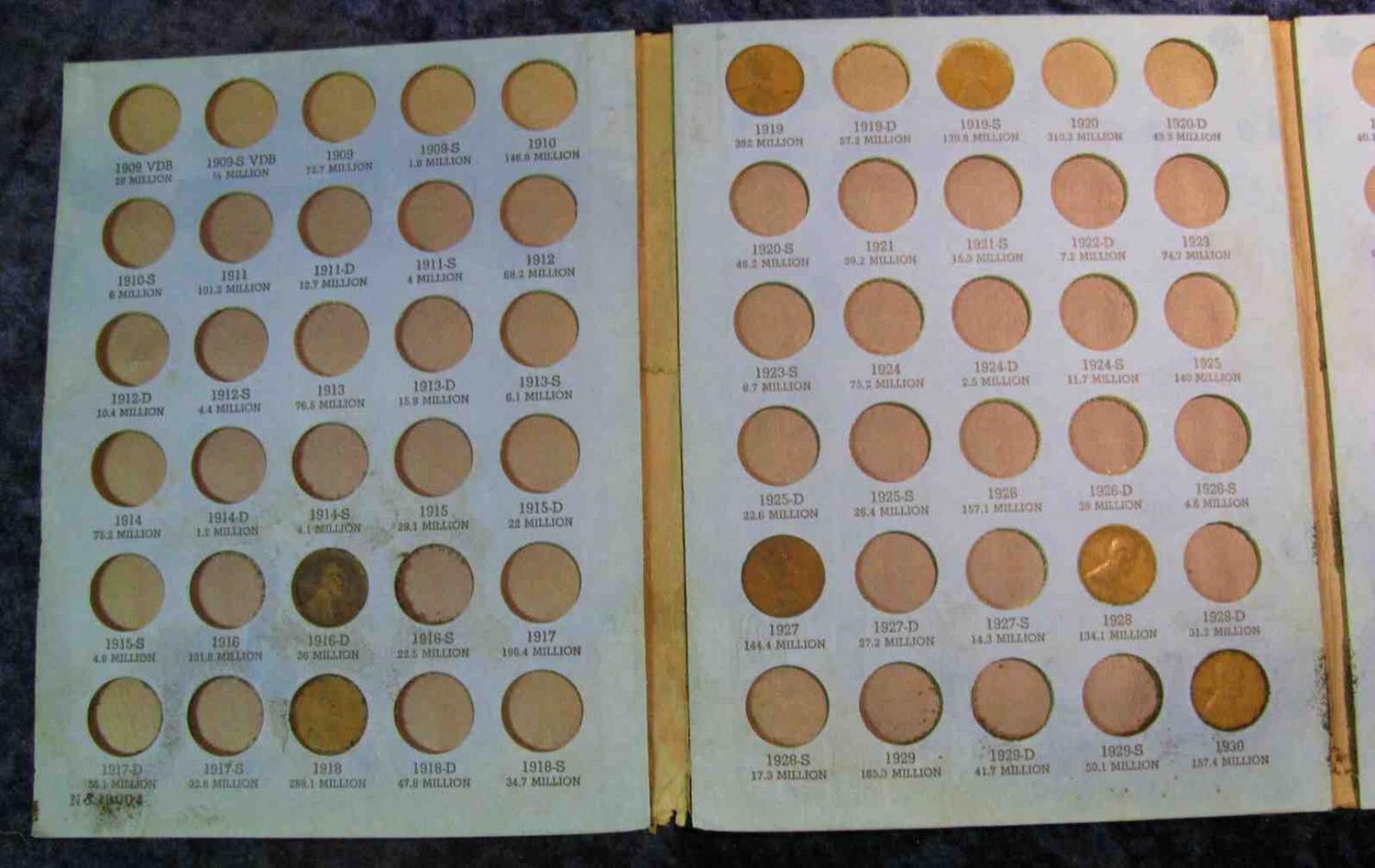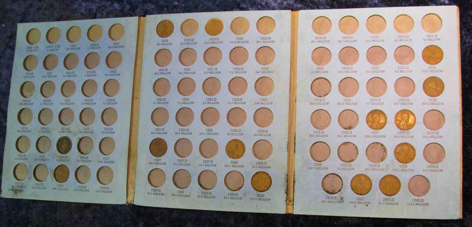 463. 1916-40 Partial Set of Lincoln Cents in a Whitman folder. (14 pcs.) Folder is water damaged.