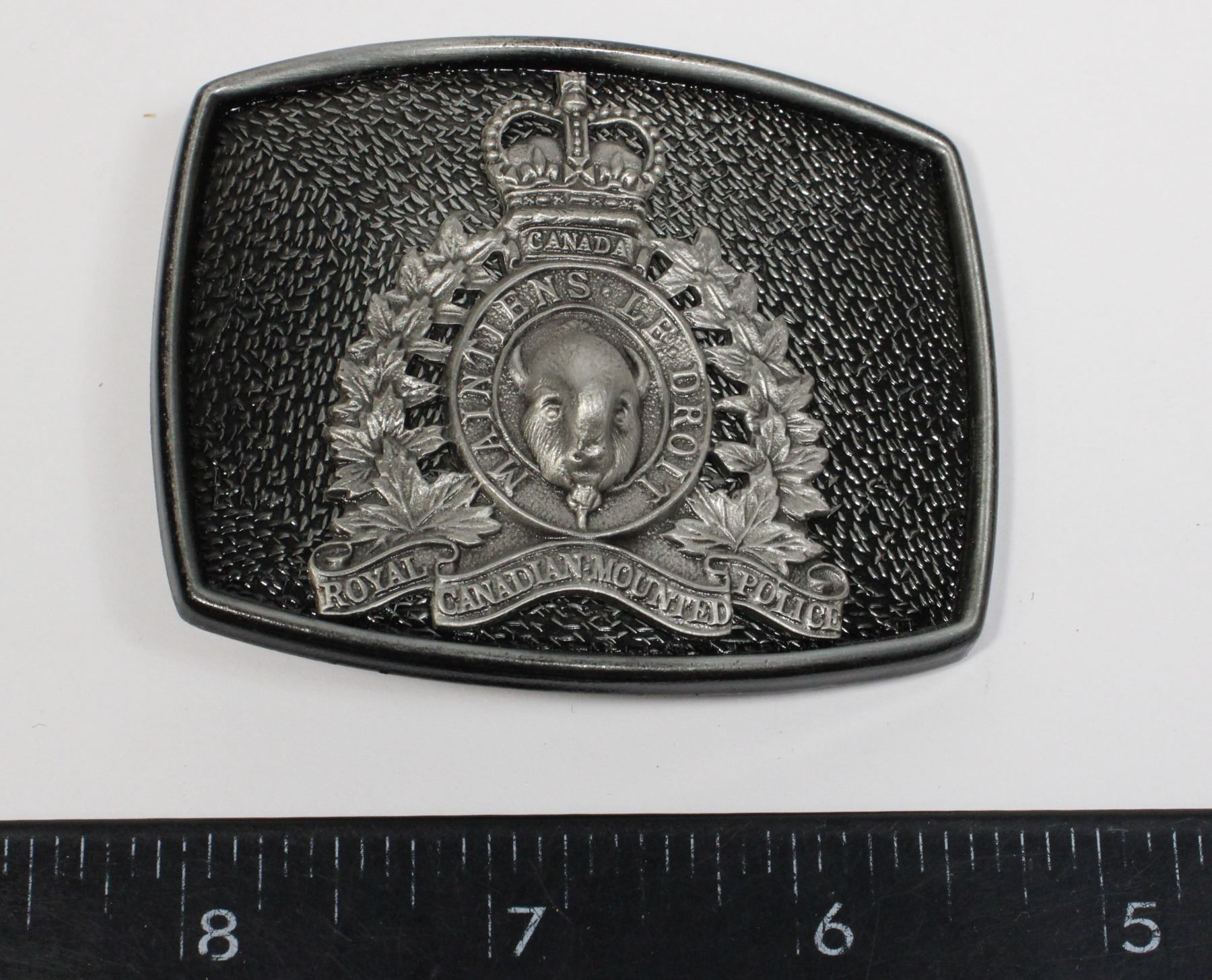 UNMARKED ON REVERSE SOLID METAL BELT BUCKLE - LAW ENFORCEMENT CANADA ROYAL CANADIAN MOUNTED POLICE