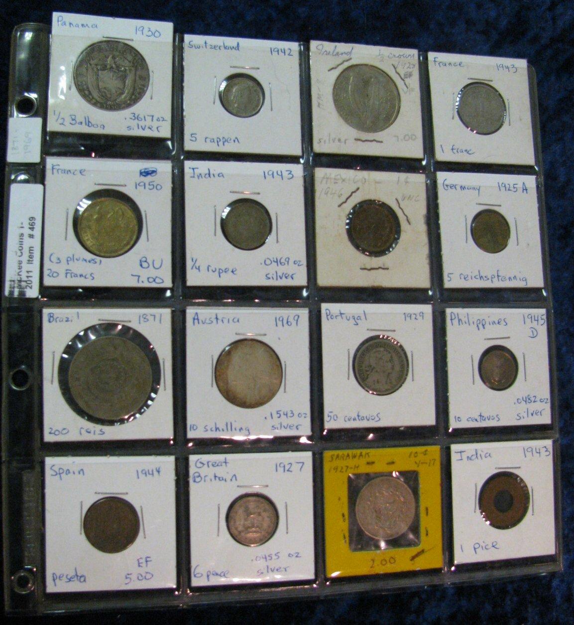 469. (16) Foreign Coins 1871-1969 Including some Silver and Better Coins.
