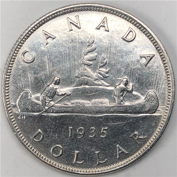 1935 King George V Canadian Silver Dollar UNC Nice Toning
