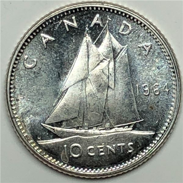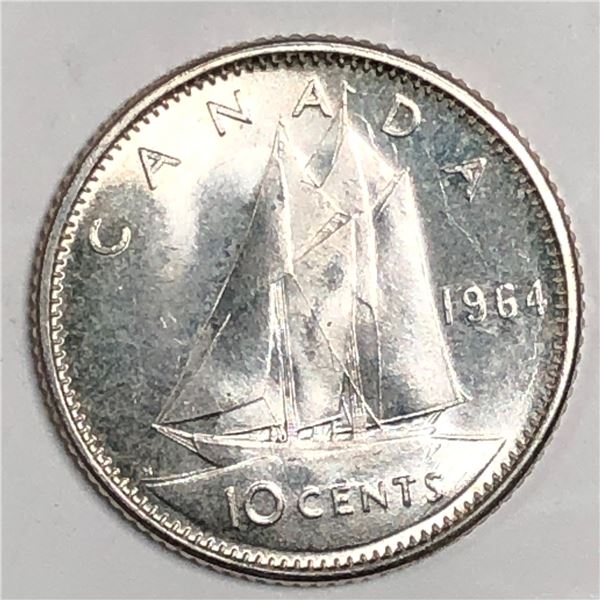 Canadian .10 Cent Dime 1964 UNC Heavy Cameo402 - Canadian .10 Cent Dime 1964 UNC Heavy Cameo