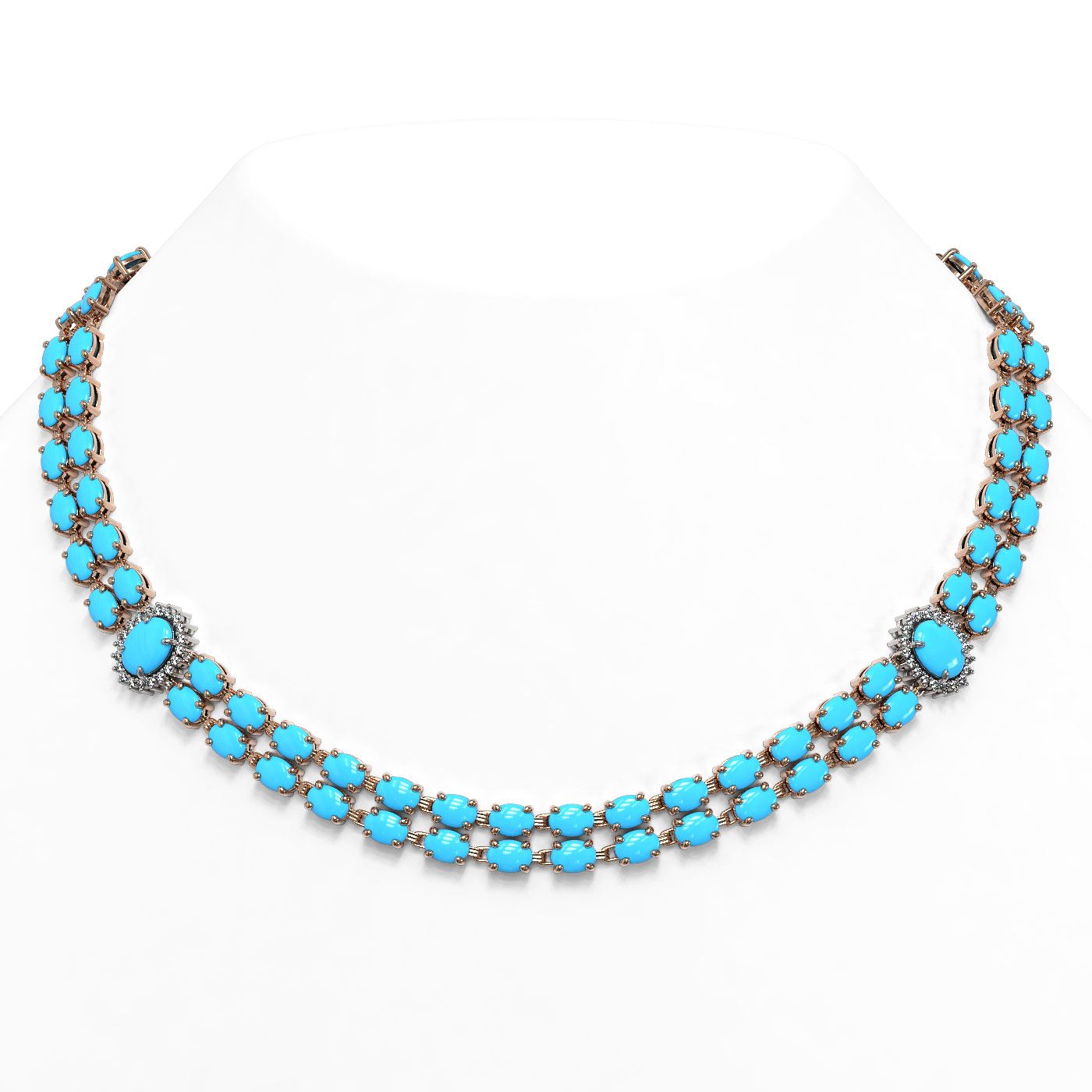 47.17 ctw Turquoise & Diamond Necklace 14K Rose Gold