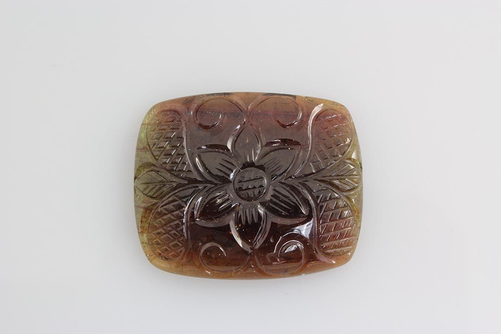31.57x25.91x5.61mm Hand Carving Flower Design in Natural Multi-Color Tourmaline Rectangular shape