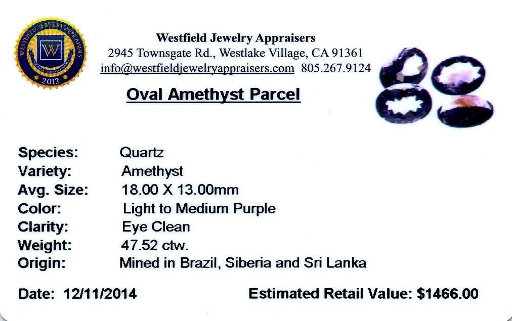 47.52ctw. Oval Amethyst Parcel Westfield Appraised at $1,466.00.