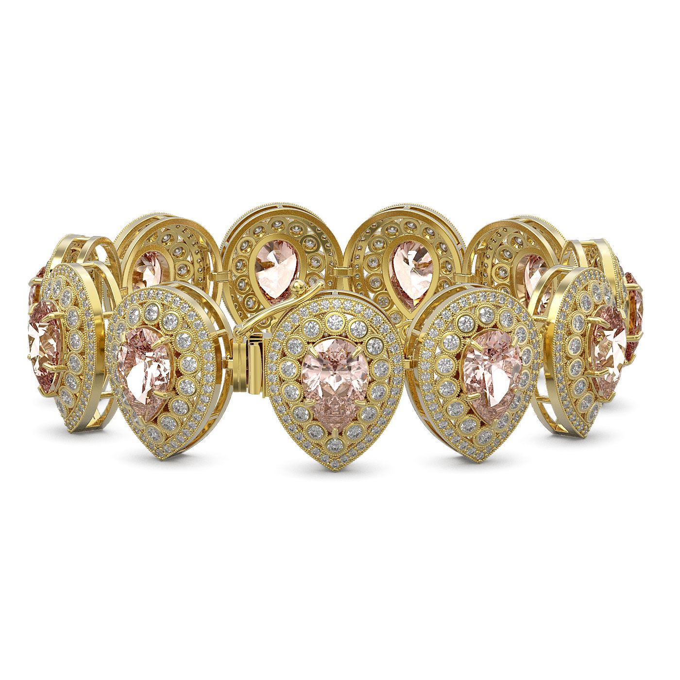 REF-2044H4R - SKU: 43279 ---- 47.64 ctw Morganite & Diamond Victorian Bracelet 14K Yellow Gold
