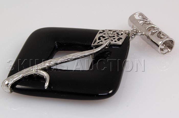 47.78CTW BLACK STONE SQUARE DONUT SILVER PENDANT **|**|** 47.78CTW BLACK STONE SQUARE DONUT SILVER PENDANT MEASURING 1.22 INCHES ; MSRP: $300