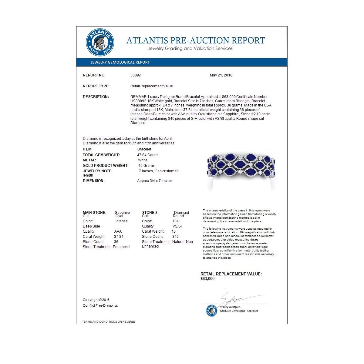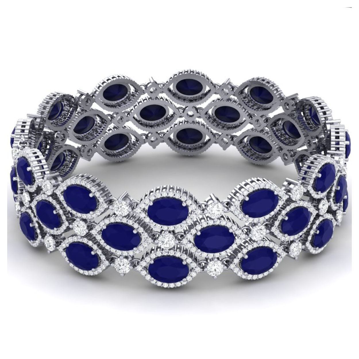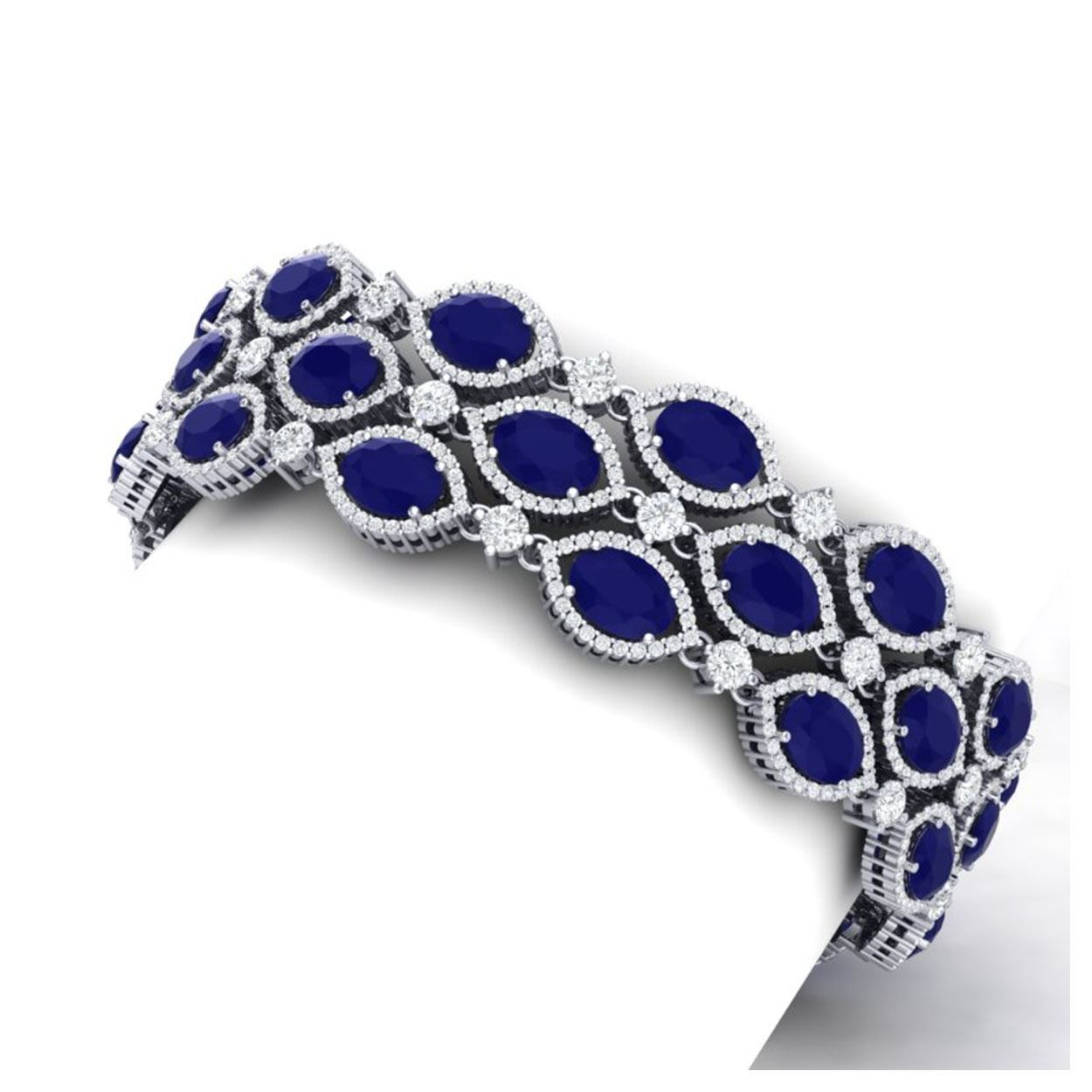 47.84 ctw Sapphire & VS Diamond Bracelet 18K White Gold