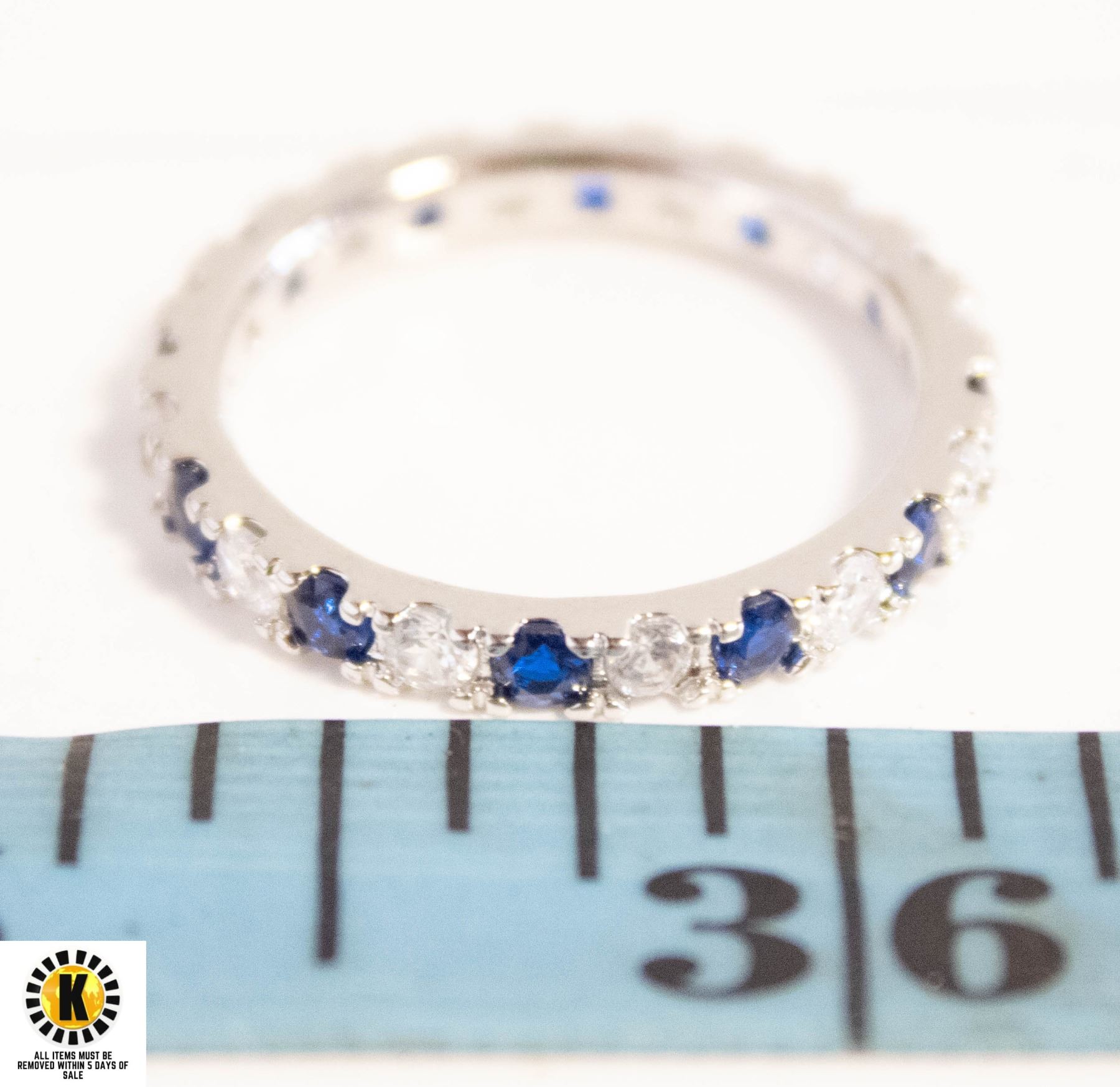 47- BLUE AND CLEAR CZ ETERNITY RING SIZE 8.5