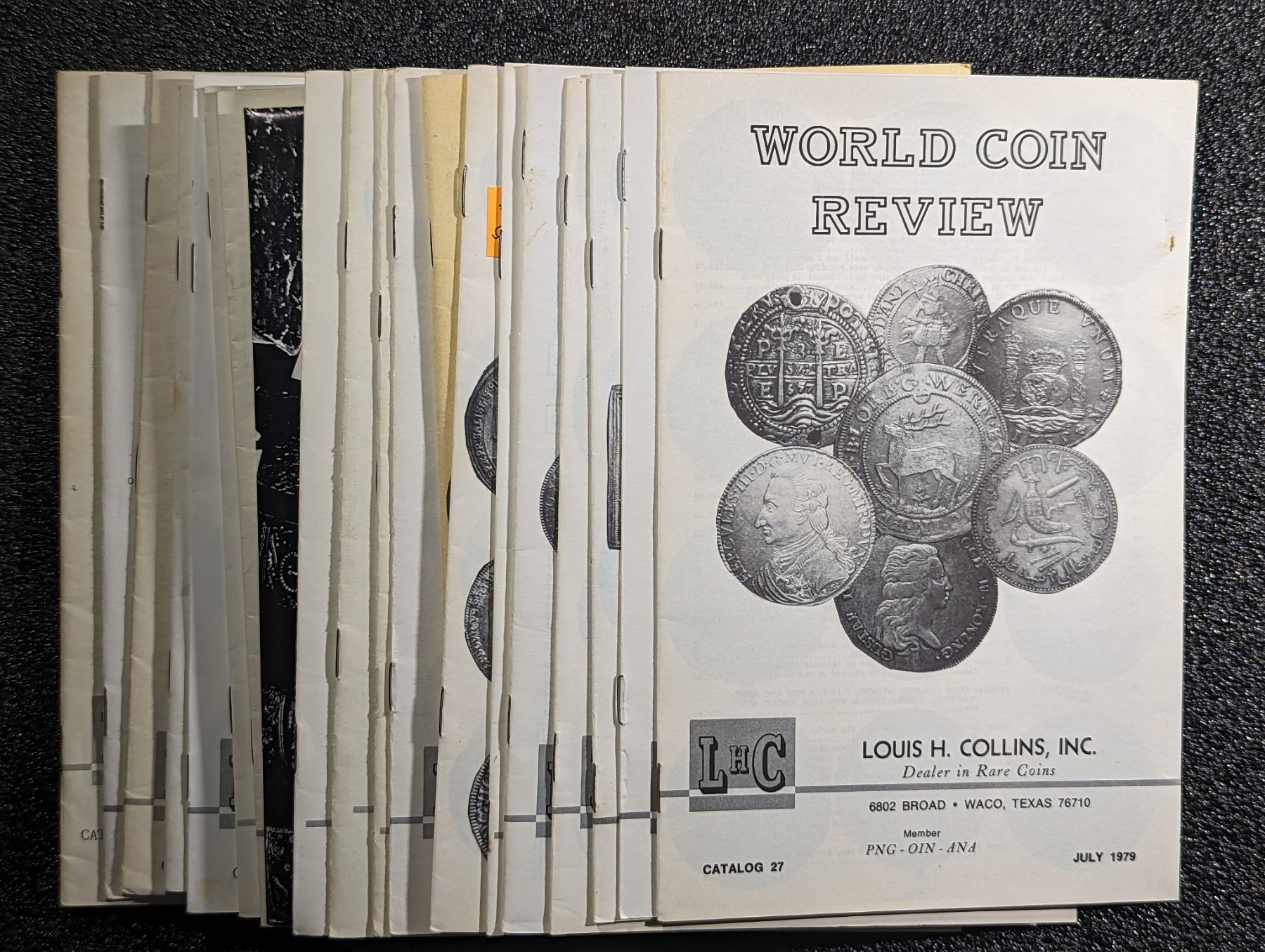 (26) Louis H. Collins, Inc. Catalog # 27. World Coin Review. July 1979. 1-146 Lots. 12mo. original paper wraps. Fixed Price List. Waco. 10 Pages. 5 b&w coin plates. Fine.