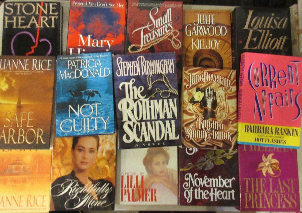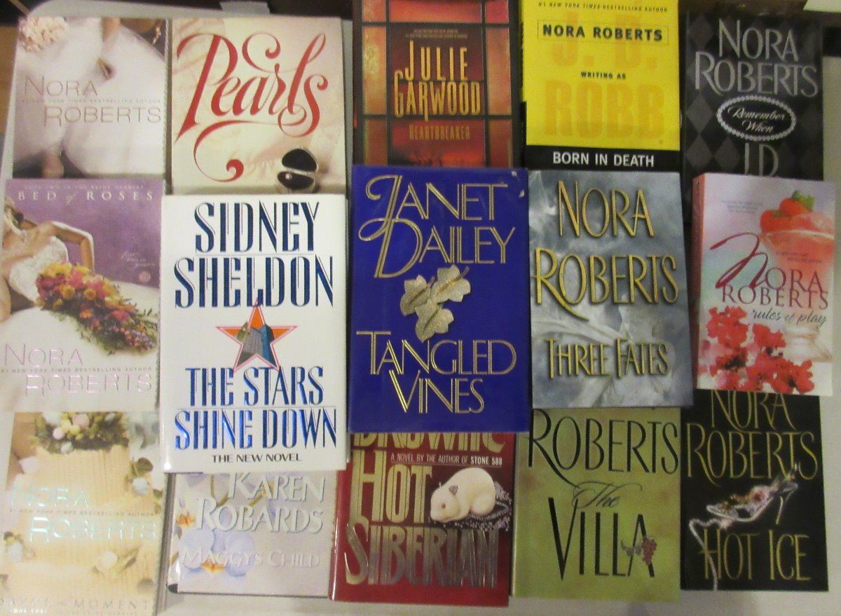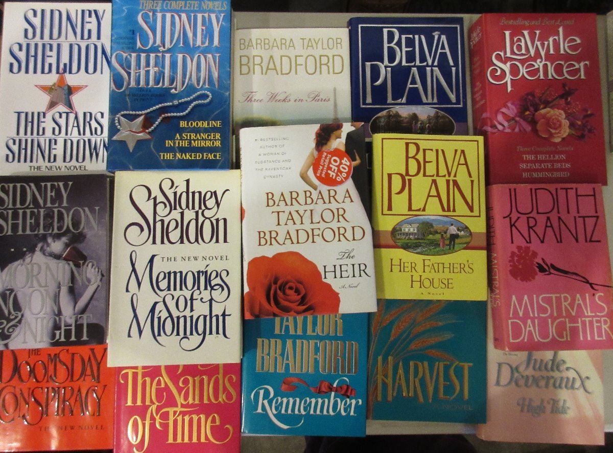 Large lot Hard Covered books with dust jackets, Sidney Sheldon, Barbara Taylor Bradford, Belva Plain, Judith Kranz, Luanne Rice, Mary Higgins Clark, Judith Deveraux, Nora Roberts and some paperback J.D. Dobbs