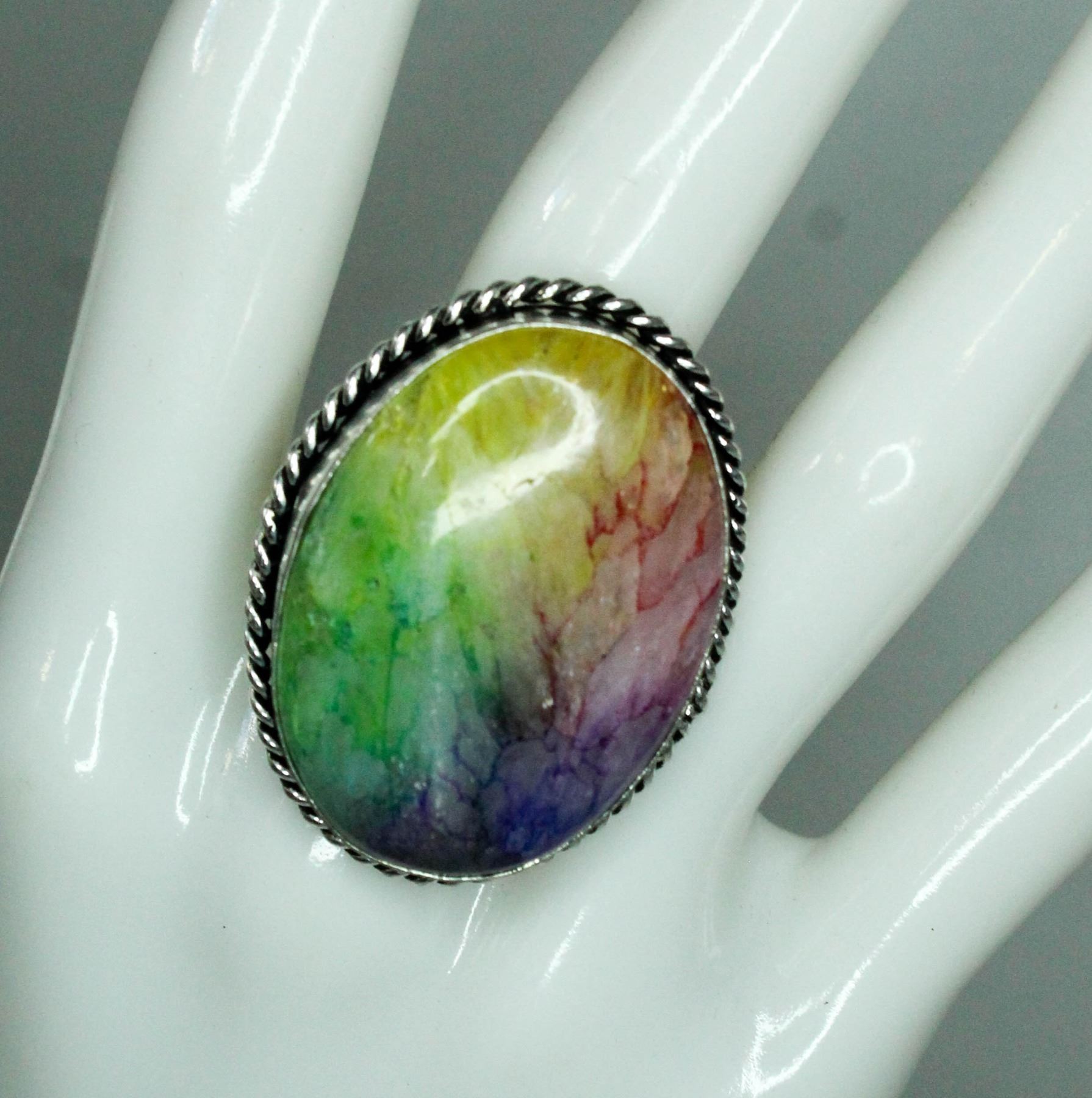 #47-NATURAL RAINBOW SOLAR QUARTZ RING SIZE 6.5