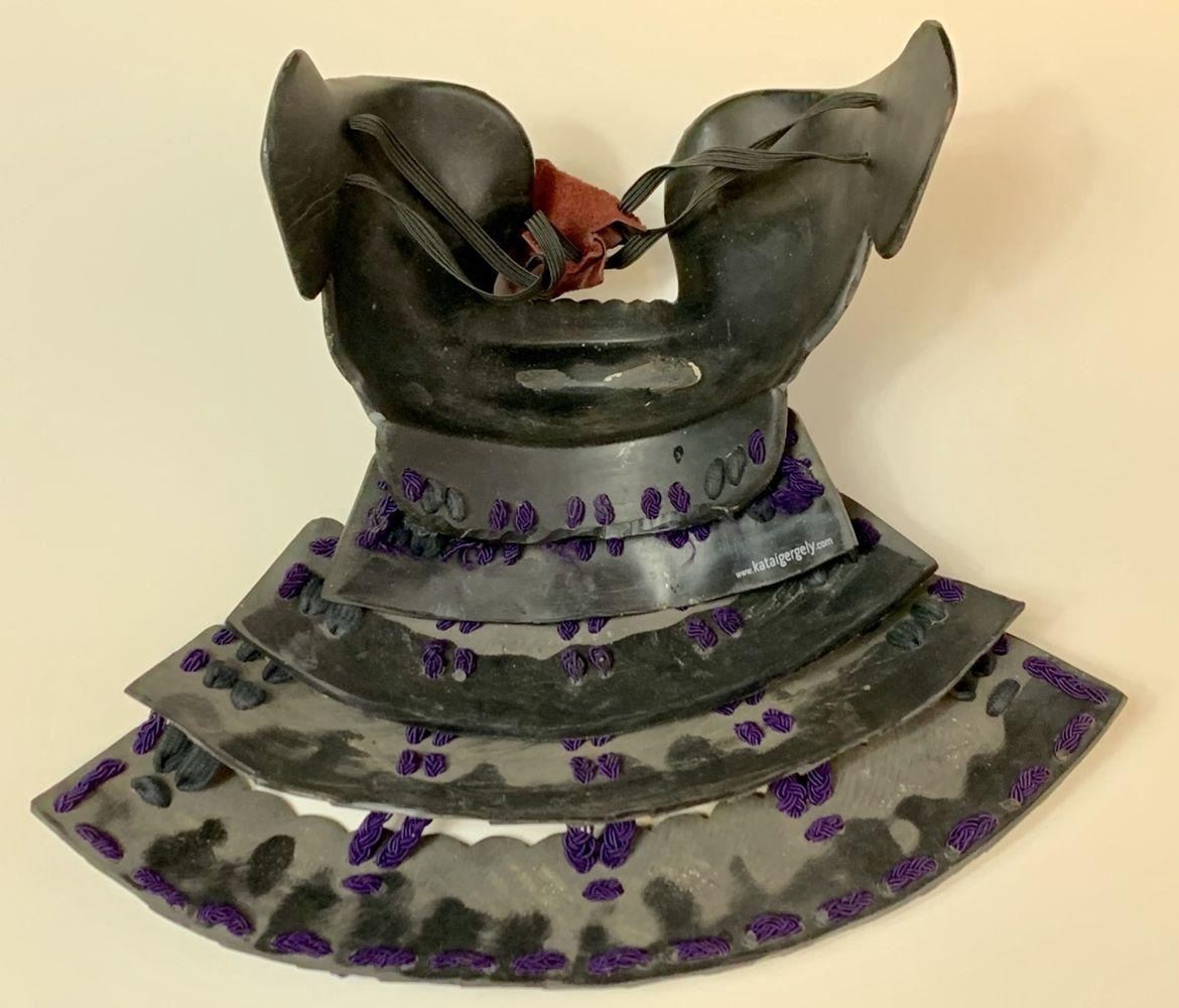 Original Samurai face and neck guard used in the period fantasy action-adventure film "47 Ronin" (2013), where a band of samurai set out to avenge the death and dishonor of their master at the hands of a ruthless shogun. Starring Keanu Reeves and Hiroyuki Sanada.