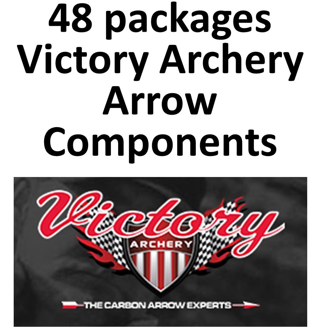 47 packages Victory Arrow Components, Pin Bushings V-Force 12 Pk (5), V-Force Inserts 12 Pk (21), Target Points 100 Grain V-Force 12 Pk (3), Nano Pin Nock Adapter 12 Pk (4), Target Points VX27 - 100gr Glue In 12 Pk (2), Target Points VX27 - 200gr Glue In 12 Pk (6), Top Hat Stainless Inserts for RIP Arrows 12 Pk (6)