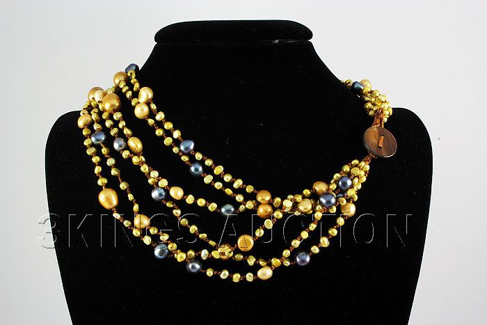 470.87CTW 18in. FRESHWATER MULTI-COLOR NECKLACE **|**|** MULTISTRAND GREEN, GOLD AND BLACK FRESHWATER PEARL NECKLACE W/ BOTTON LOCK ; MSRP: $600