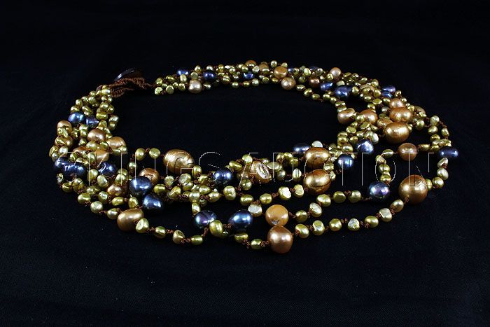 470.87CTW 18in. FRESHWATER MULTI-COLOR NECKLACE **|**|** MULTISTRAND GREEN, GOLD AND BLACK FRESHWATER PEARL NECKLACE W/ BOTTON LOCK ; MSRP: $600