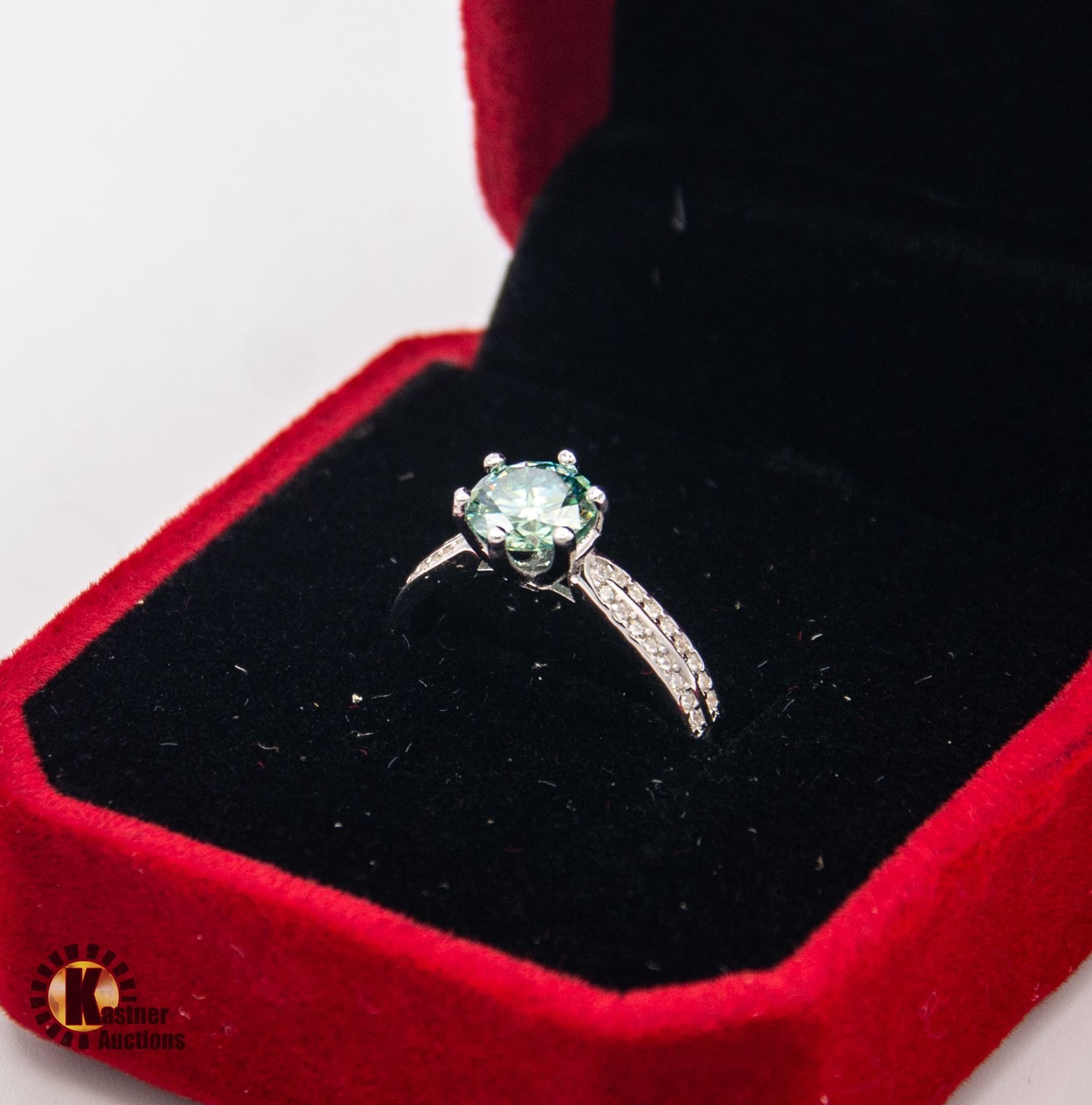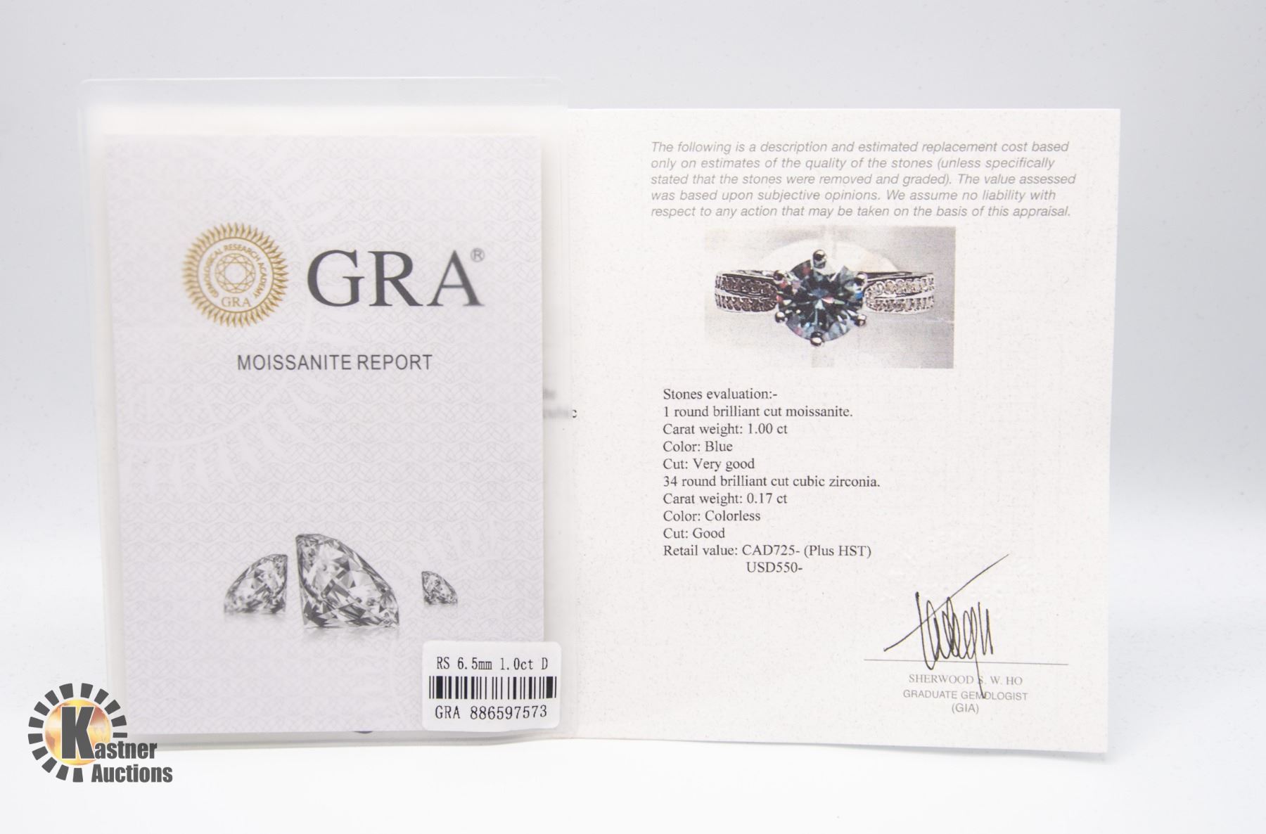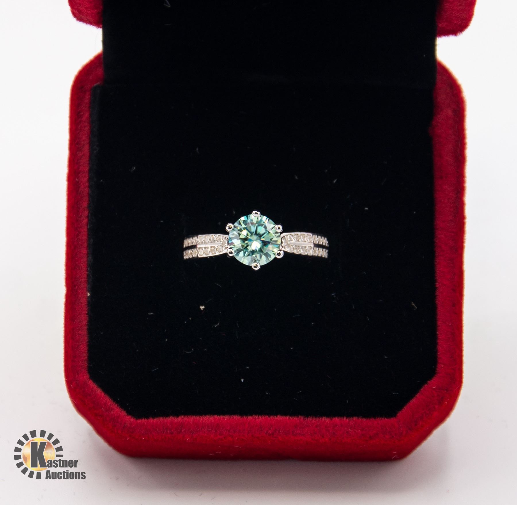 MOISSANITE STONE VVS BLUE COLOR SET IN 925 SILVER RING SIZE 5 RETAIL VALUE $725.00 **ALL ITEMS MUST BE REMOVED BY 5PM SATURDAY, AUGUST 24th 2024. ALL REMAINING ITEMS WILL BE SUBJECT TO A $6.00 PER DAY STORAGE CHARGE. ANY ITEMS REMAINING AFTER MONDAY, SEPTEMBER 16TH 2024 WILL BE CONSIDERED FORFEITED. NO REFUNDS WILL BE ISSUED FOR FORFEITED ITEMS. TO SCHEDULE A PICK UP APPOINTMENT CLICK HERE