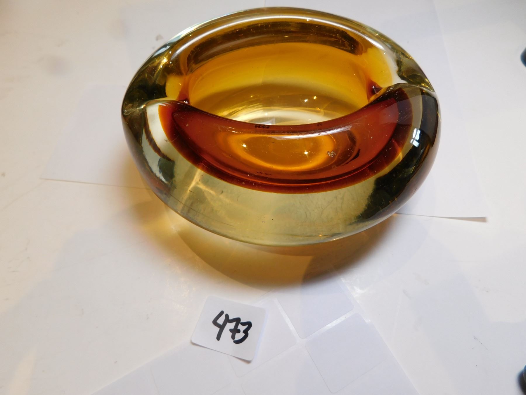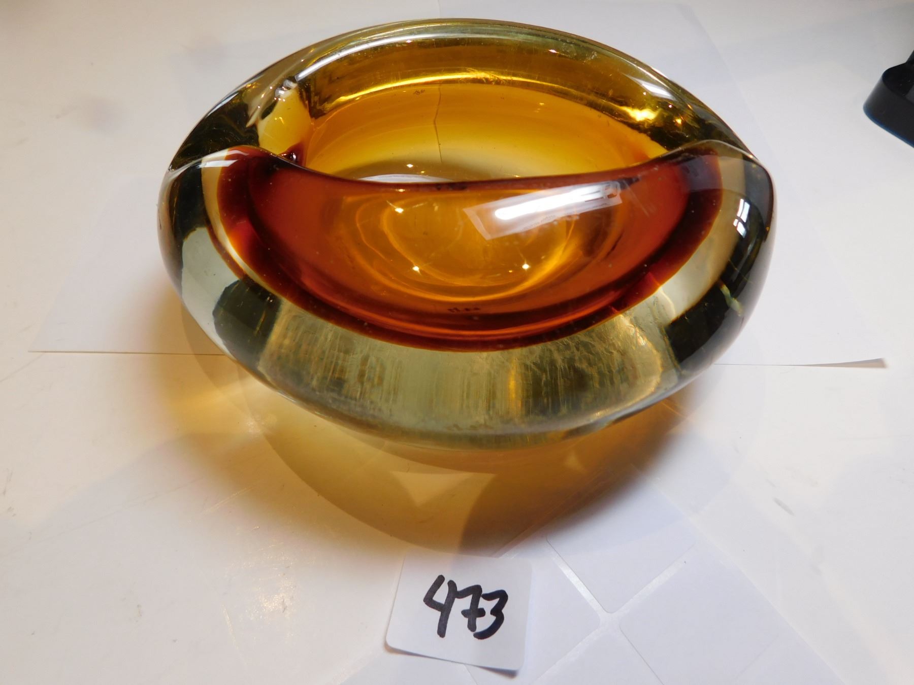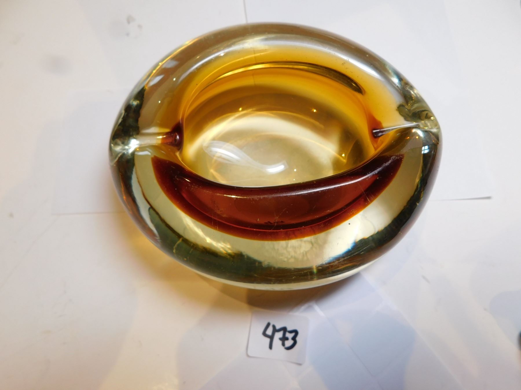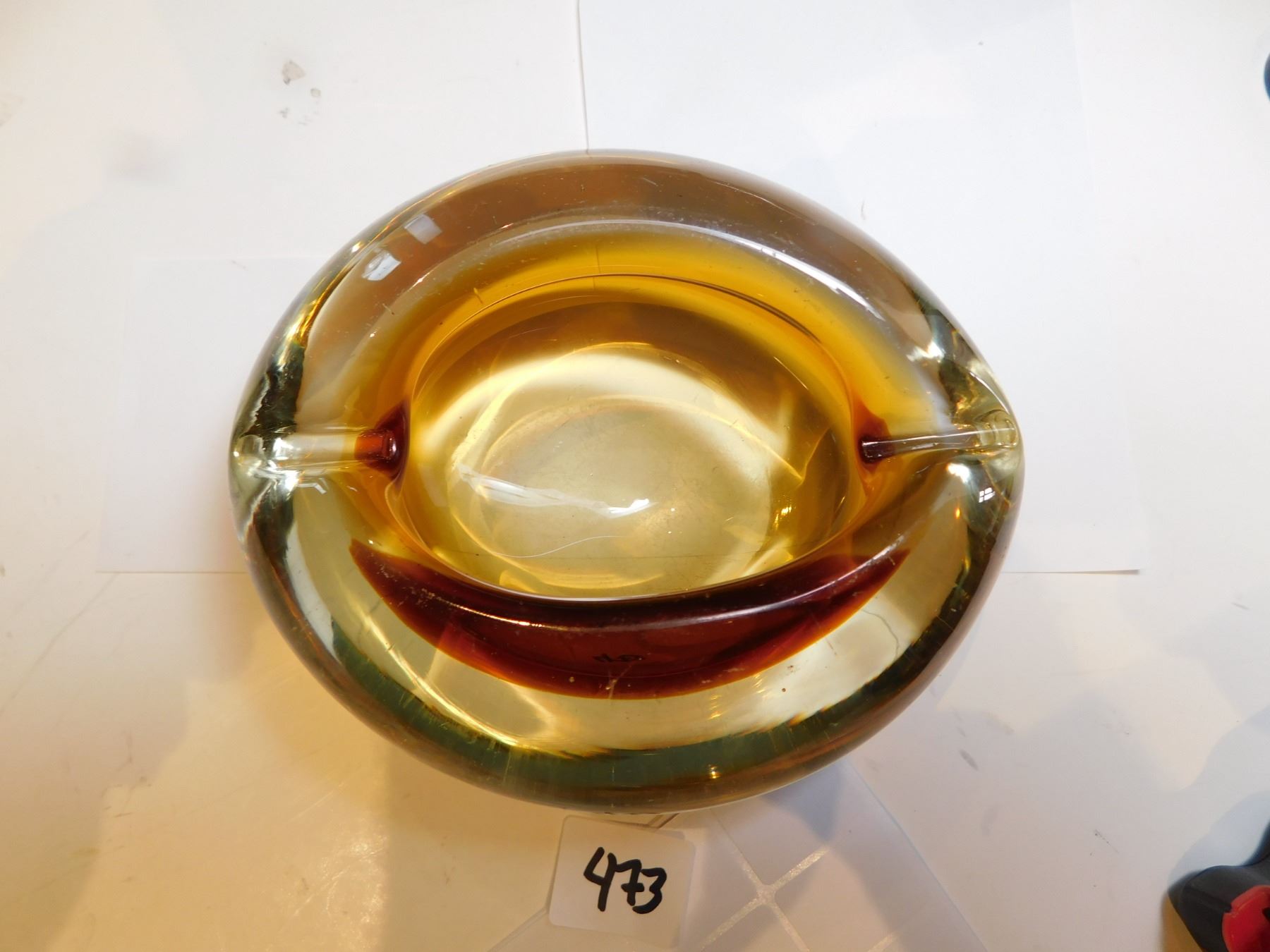 473. ATOMIC SHAPED AMBER TWO TONED UNIQUE SHAPED ASHTRAY