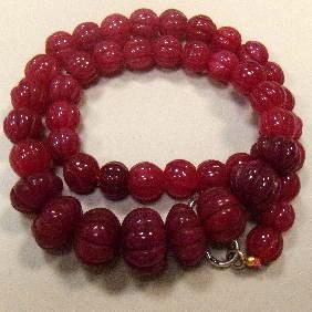 475 CTS CARVED GLASS FILLED ENHANCED RUBY STRAND - TEMPORARY CLASP