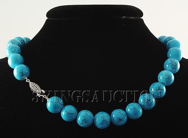 479.53CTW 17in. BLUE TURQUOISE NECKLACE W/ METAL LOCK **|**|** AA+ QUALITY TURQUOISE NECKLACE WITH METAL LOCK 14MM-32PCS IN A STRAND ; MSRP: $800
