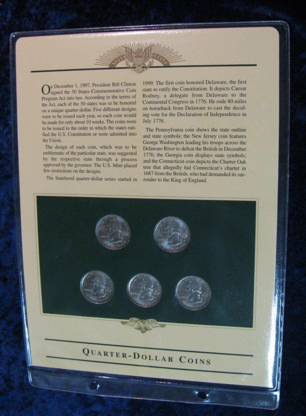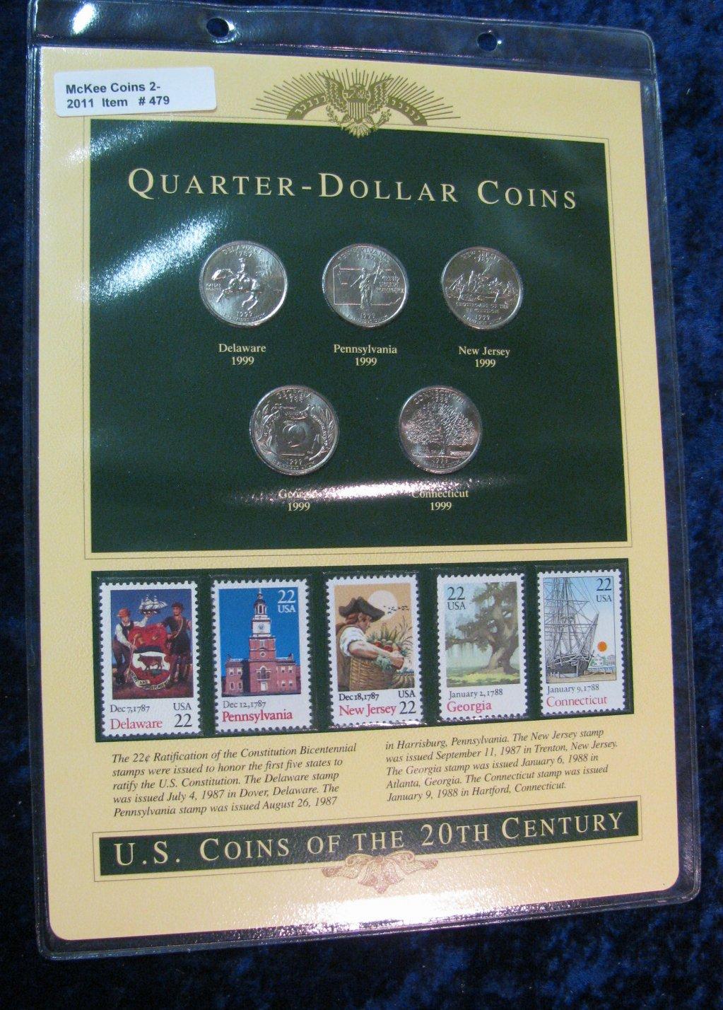 479. Postal History Collection of 1999 Statehood Quarters, which includes 5 different .22c U.S. stamps.