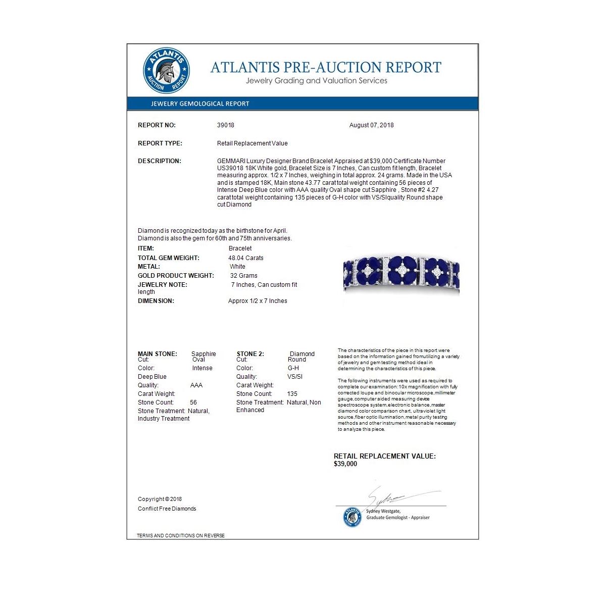 Total Gem weight: 48.04 carats