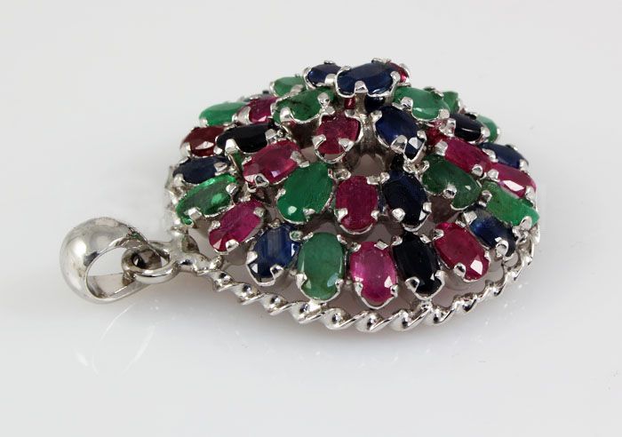 48.16CTW Multi-color Precious Stone Silver Pendant **|**|** 1.20in. Vintage Cluster of Multi-color Precious Stone Silver Pendant; Size: 5x3mm; ctw: 12.80; stone count: 40; gram weight: 7.07 ; MSRP: $800