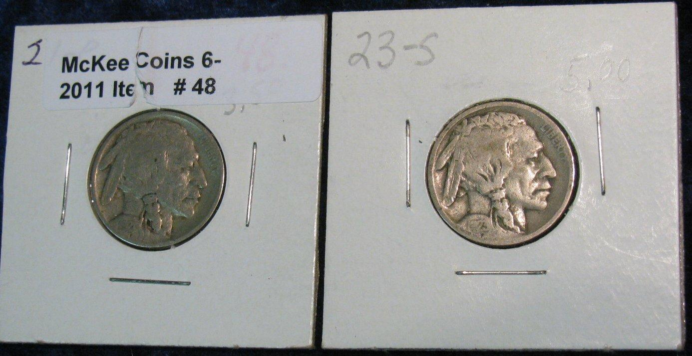 48. 1921 P & 23 S Buffalo Nickels. G-VG.