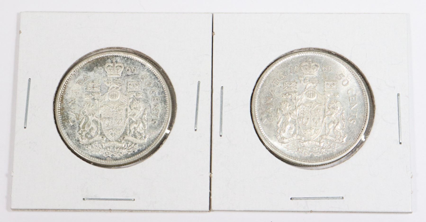 50 CENT PAIR 1966 QUEEN ELIZABETH II QEII CANADA CANADIAN SILVER CURRENCY