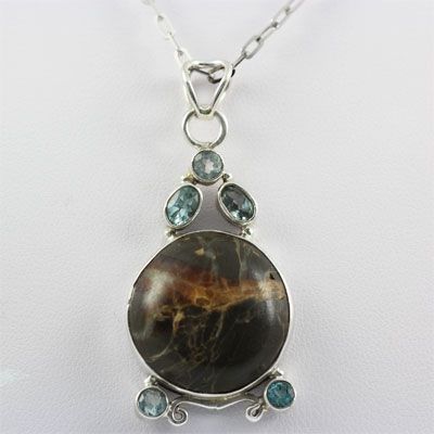 48.5ctw Aquamarine & Jasper Silver Pendant **|**|** ; MSRP: $200