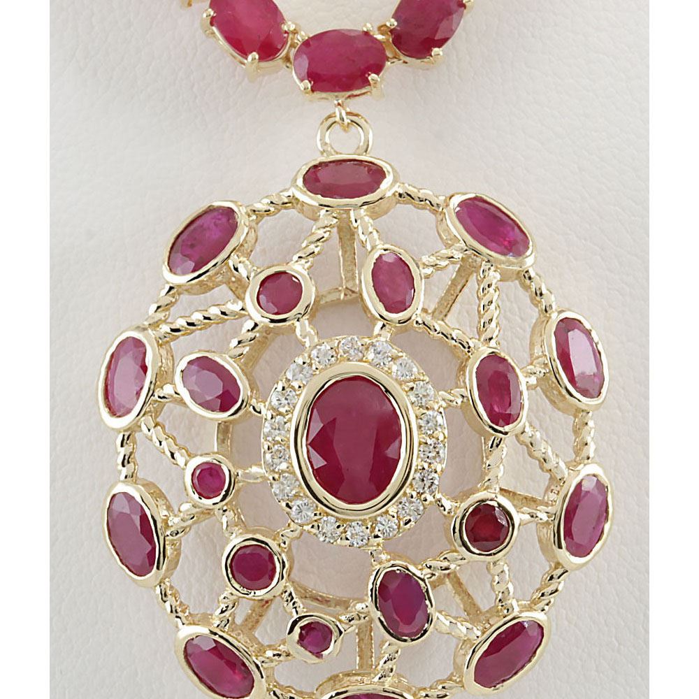 48.75 CTW Natural African Ruby And Diamond Necklace In 18K Yellow Gold