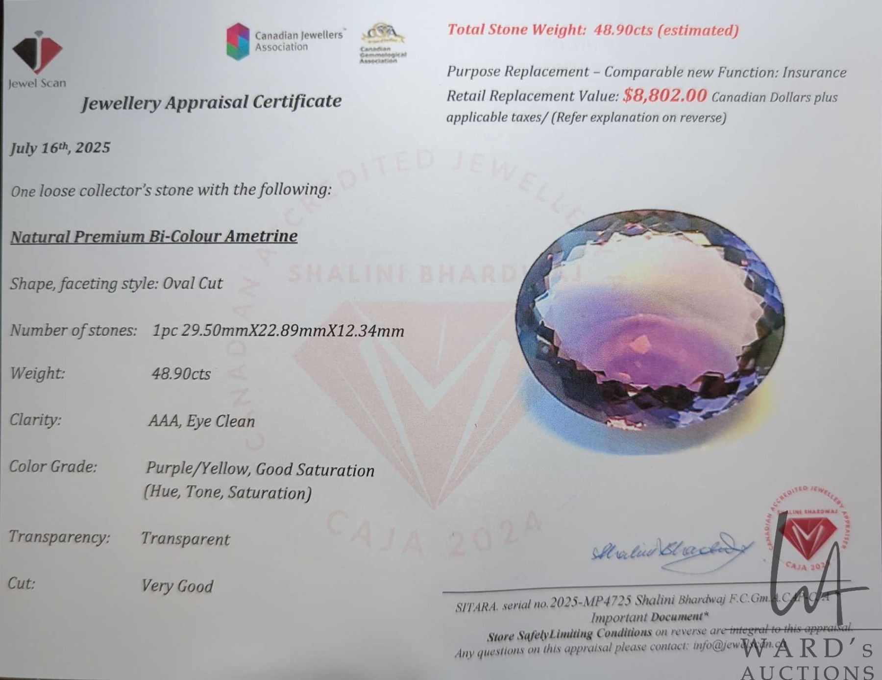 48.9 ct Certified Bi-Colour Ametrine gemstone, Certificate provided by consignor