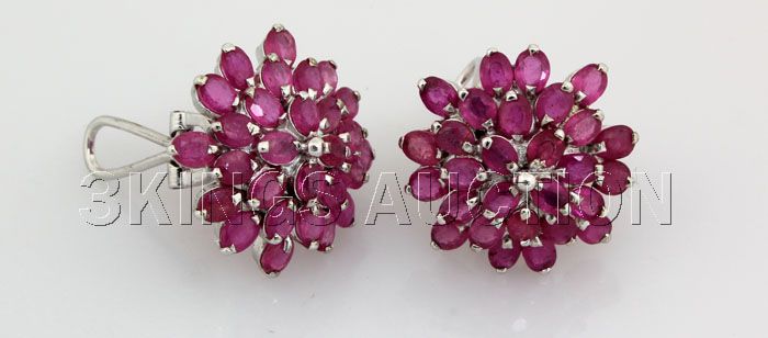 48.96CTW Flower Cluster Pink Ruby Silver Earring **|**|** Cluster of Oval Shape Pinkish Ruby Gemstone in Silver Earring; Size: 4x3mm; ctw: 14.00; stone count: 56; gram weight: 7.0 ; MSRP: $2200