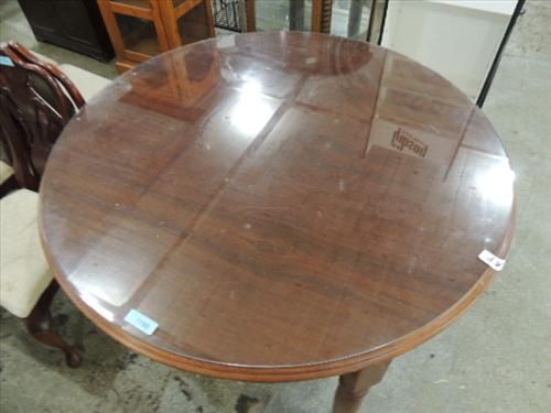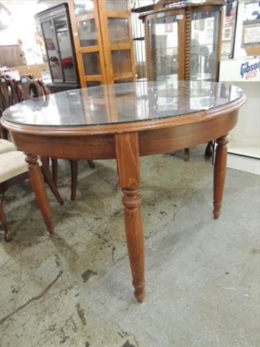 48"D X 36"H ROUND MAHOGANY TABLE WITH GLASS TOP COVER. BAR HEIGHT. NICE QUALITY TABLE. AS SHOWN. VIEW PICTURE FOR DETAIL.