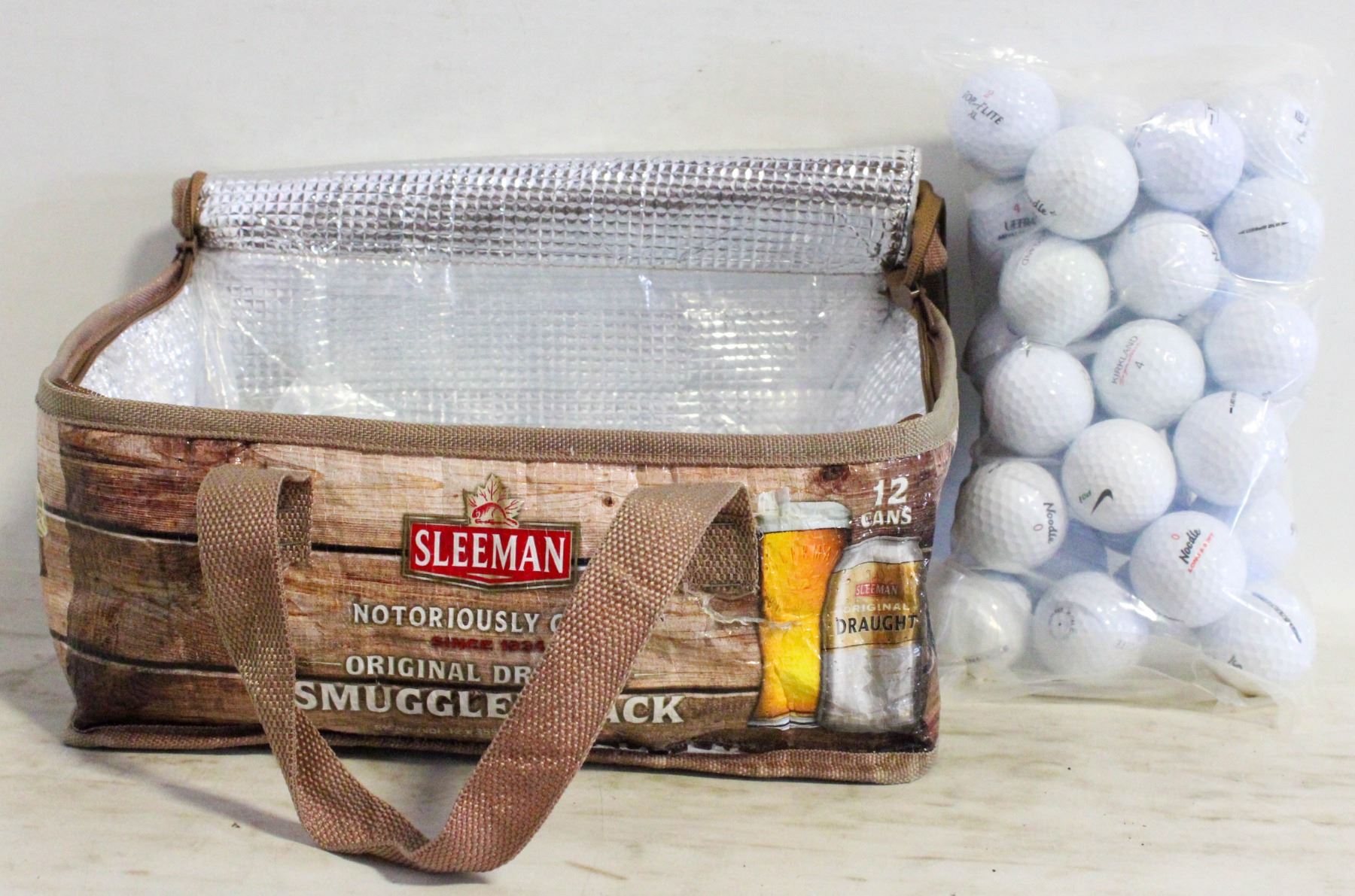 SLEEMAN COOLER BAG + 4 DOZEN USED GOLF BALLS NO NICKS OR CUTS