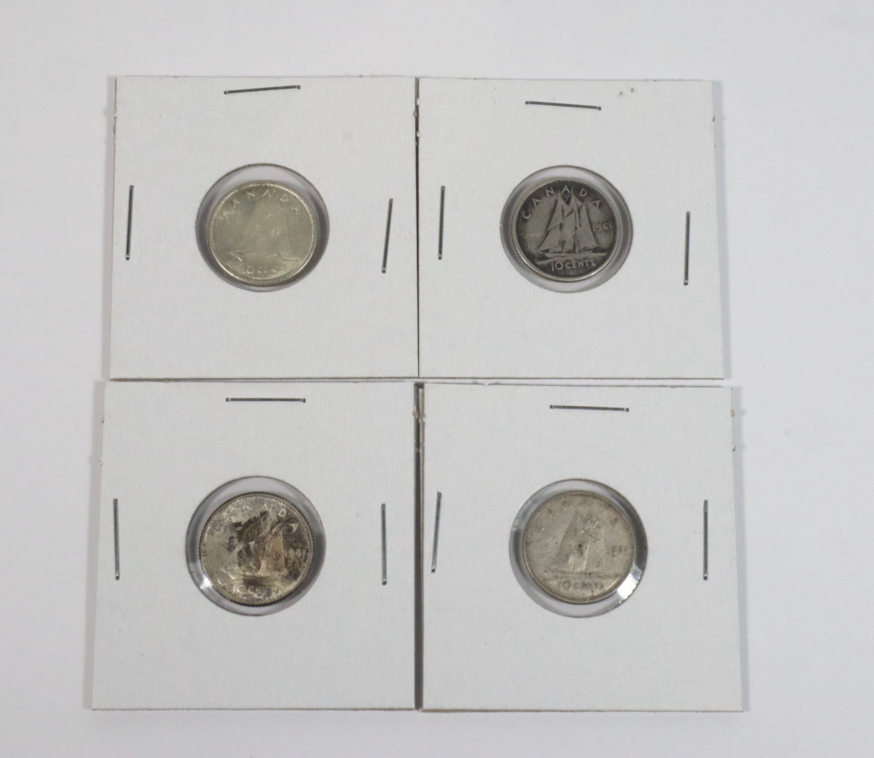 #48 LOT OF 4 1961 CANADA DIME 10 CENTS SILVER