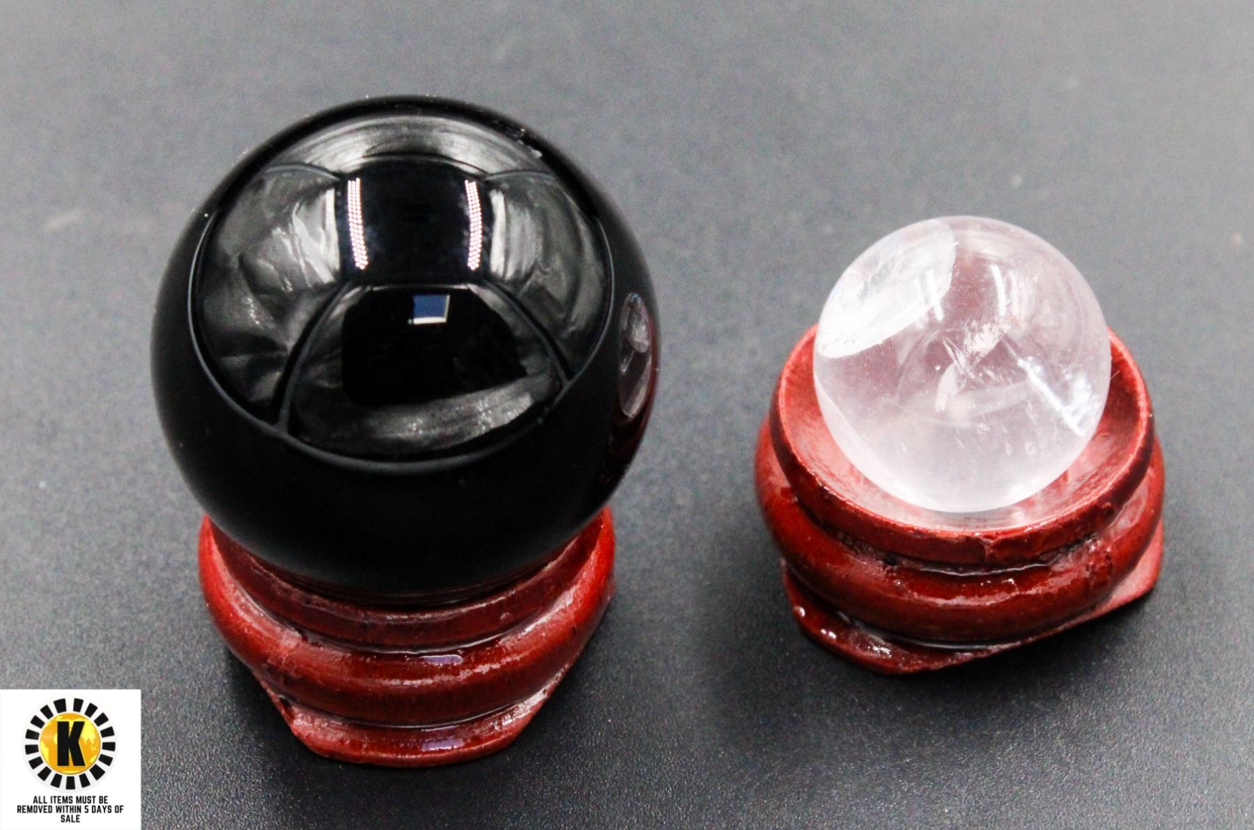 #48-NATURAL BLACK OBSIDAN,CLEAR QUARTZ SPHERE BA