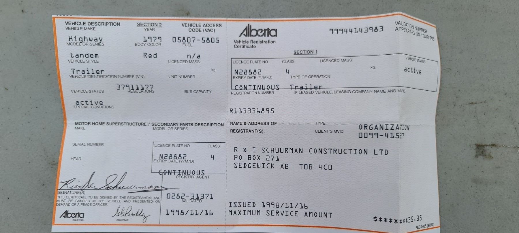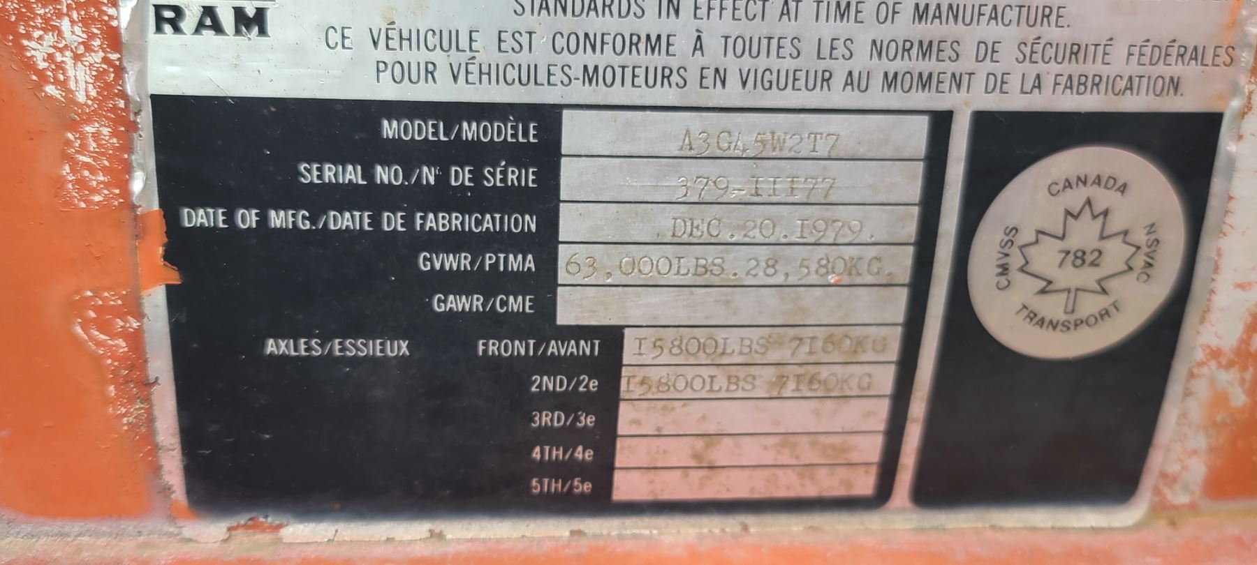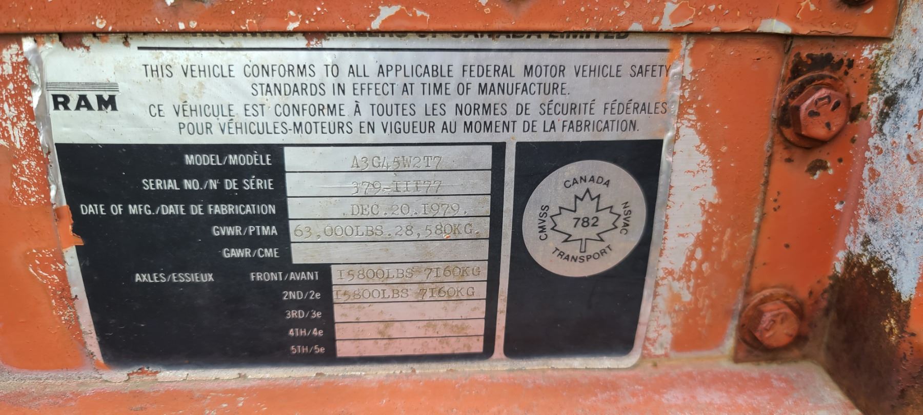 48' RAM 1979 SEMI-TRAILER - TANDEM TRAILER/STORAGE UNIT VIN #: 37911177