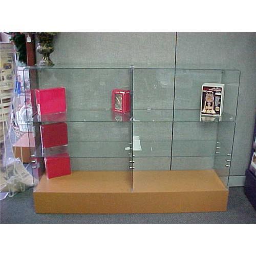 48 x 64 Glass and Wood Display Cases. Units can be dismantled and easily moved or re-configured. Clips and glass shelves come with the bases. Replacement parts are still sold by dealers. There is also a taller, lighted display case with glass, locking, sliding doors. That one is priced at $600. Very easy to work with and really looks nice.