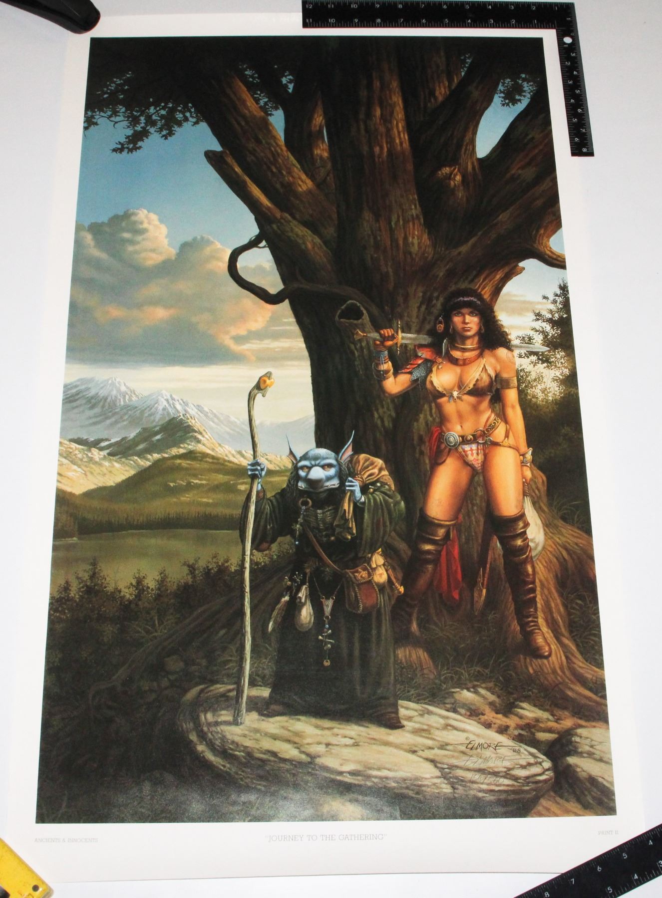 38 X 22 INCHES IN SIZE 156/500 NUMBERED SIGNED BY LARRY ELMORE 1988 READY TO FRAME PRINT, ARTIST KNOWN FOR WORK ON DUNGEONS & DRAGONS / DRAGONLANCE ETC. INCLUDES ORIGINAL PROTECTIVE SHIPPING TUBE
