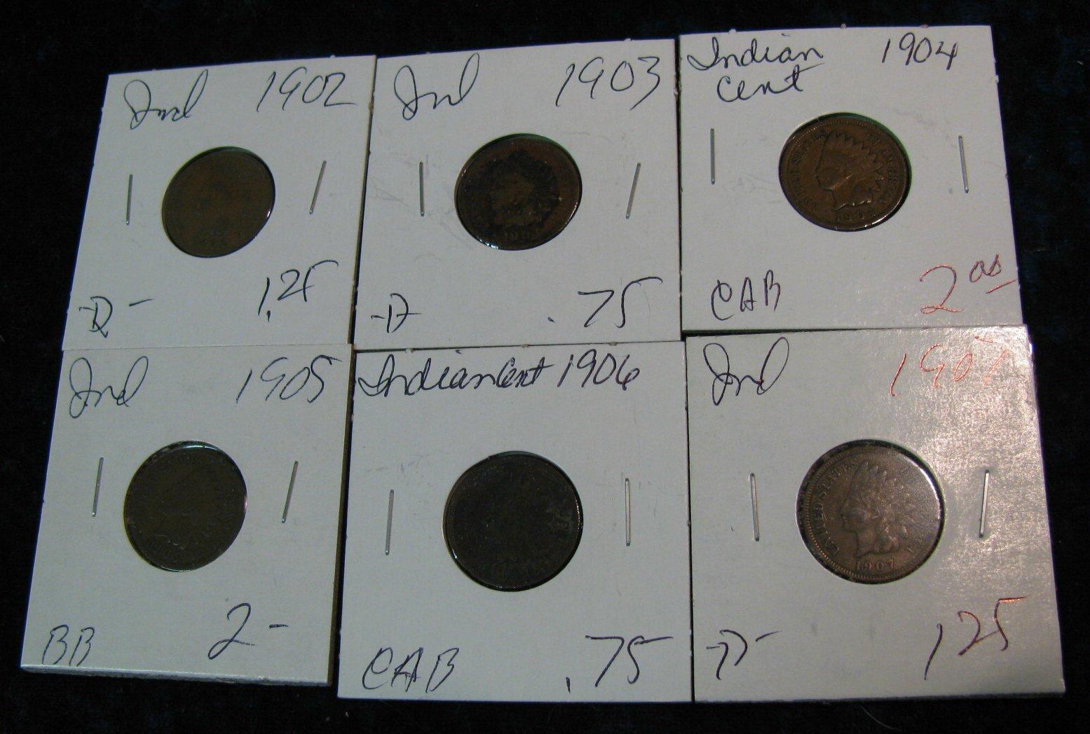482. 1902, 03, 04, 05, 06, & 07 Indian Head Cents. G-VG