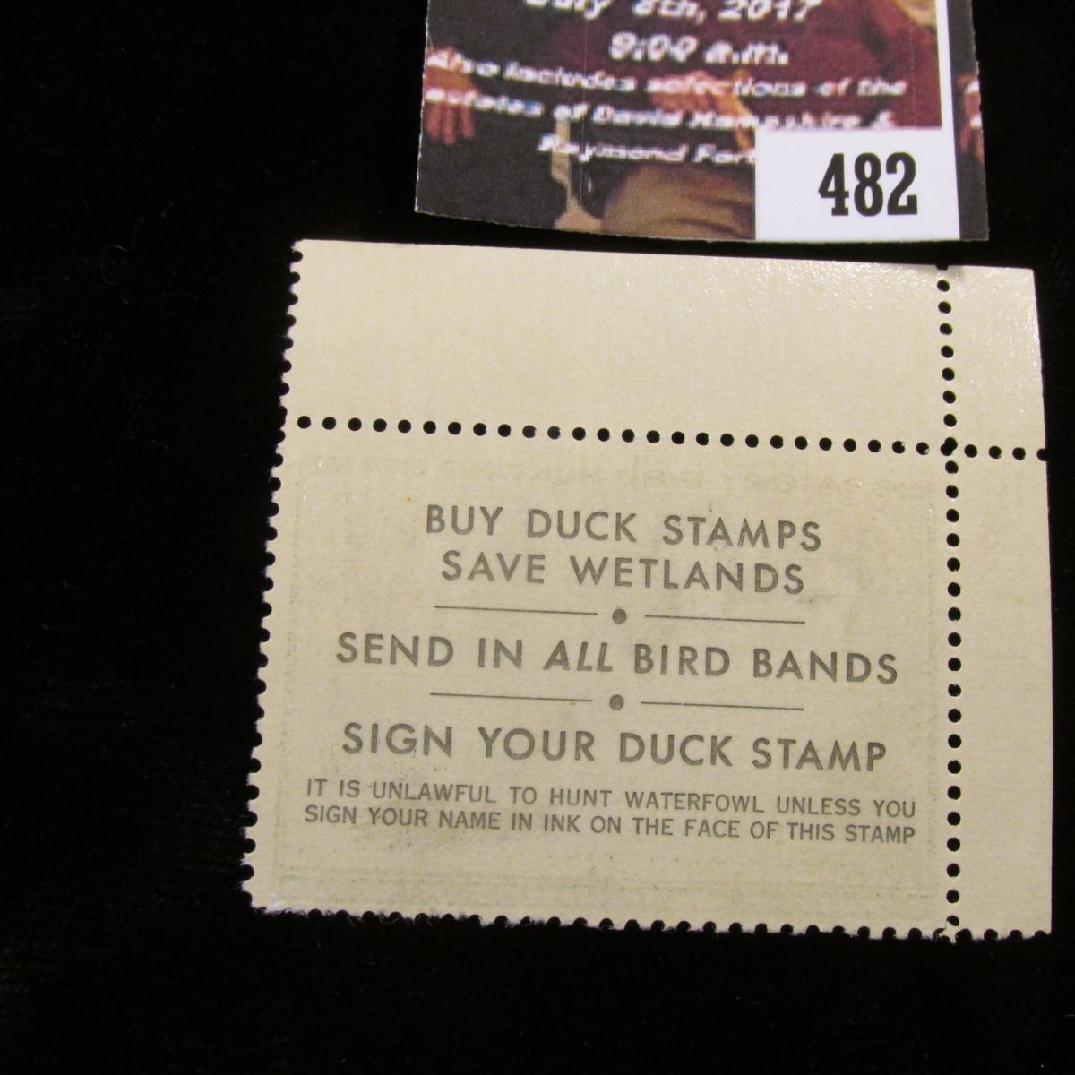 482.1970 U.S. Migratory Bird hunting Stamps, RW37, Unused, OG, Not hinged, Scarce Plate number corne