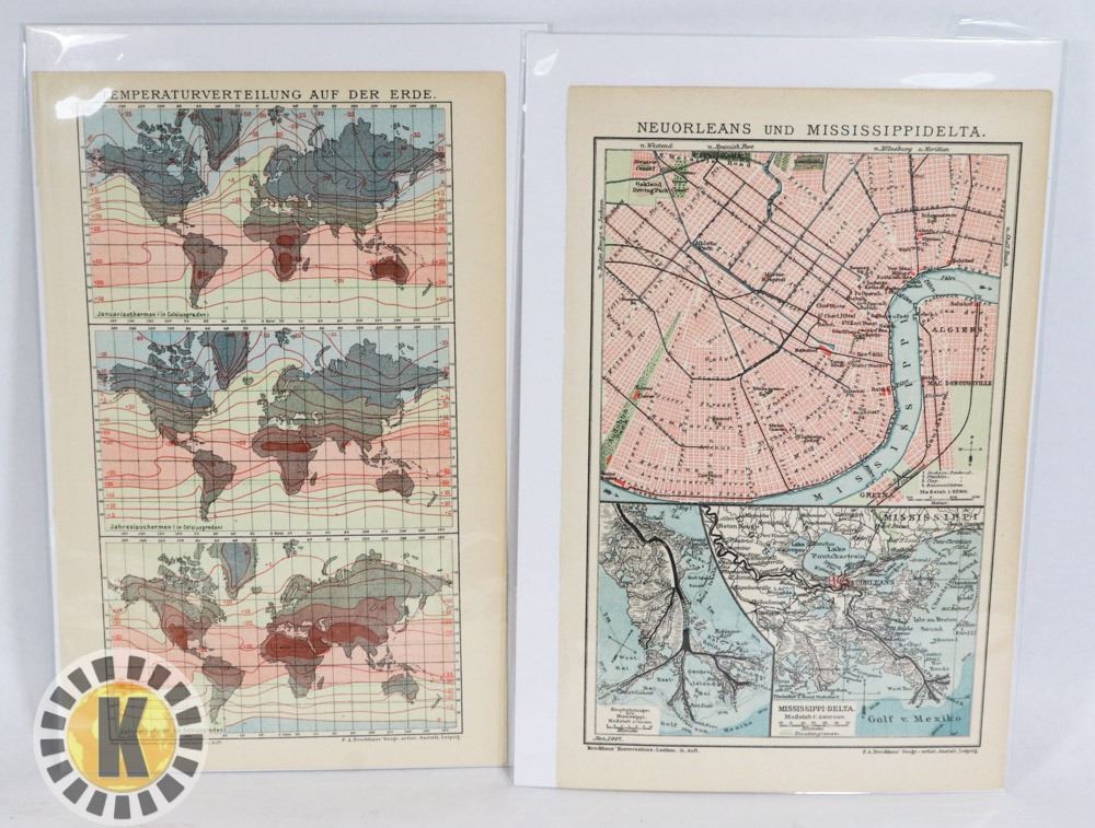 #484 LOT OF 2 VINTAGE MAP PRINTS PLATES, COLOUR