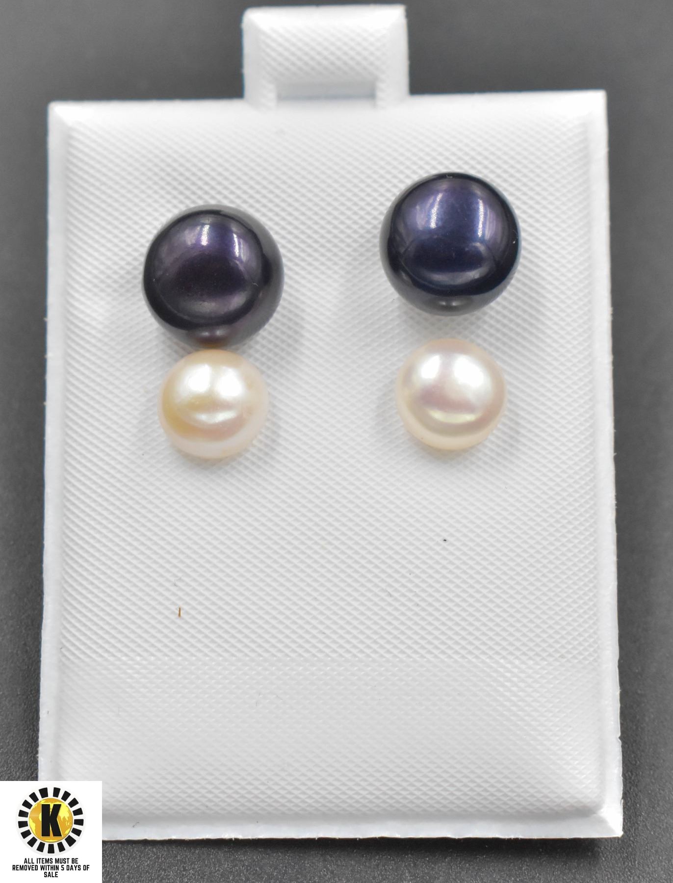 .925 STERLING SILVER / WHITE 7-8MM/BLACK 9-9.5 MM
