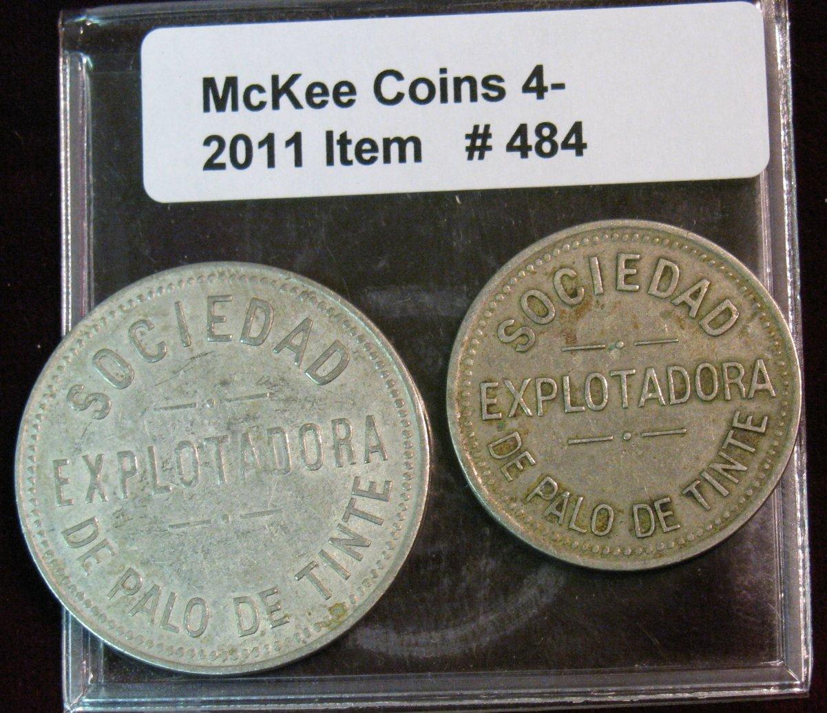 484.Sociedad Explotadora de Palo de Tinte 25c & 12 1/2c Tokens. This token is listed in Rulau's "Latin American Tokens," Yuc 237. It was issued by a company logging dye wood ("palo de tinte"). Rulau states that "only about 25 specimens have been offered publicly in the past 12 years"