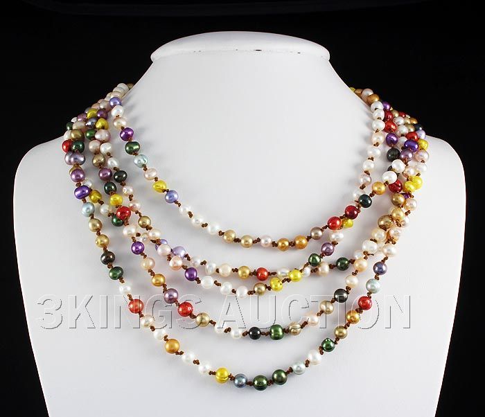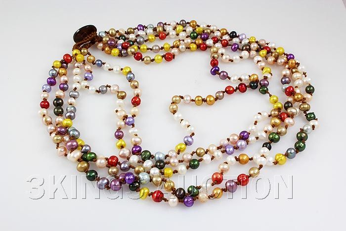 485.00CTW Multi Color Freshwater Pearl Necklace **|**|** 18 inches Multi-color 5 Strand Freshwater Pearl Necklace w/ Botton Lock; Size: 6-7mm ; MSRP: $300