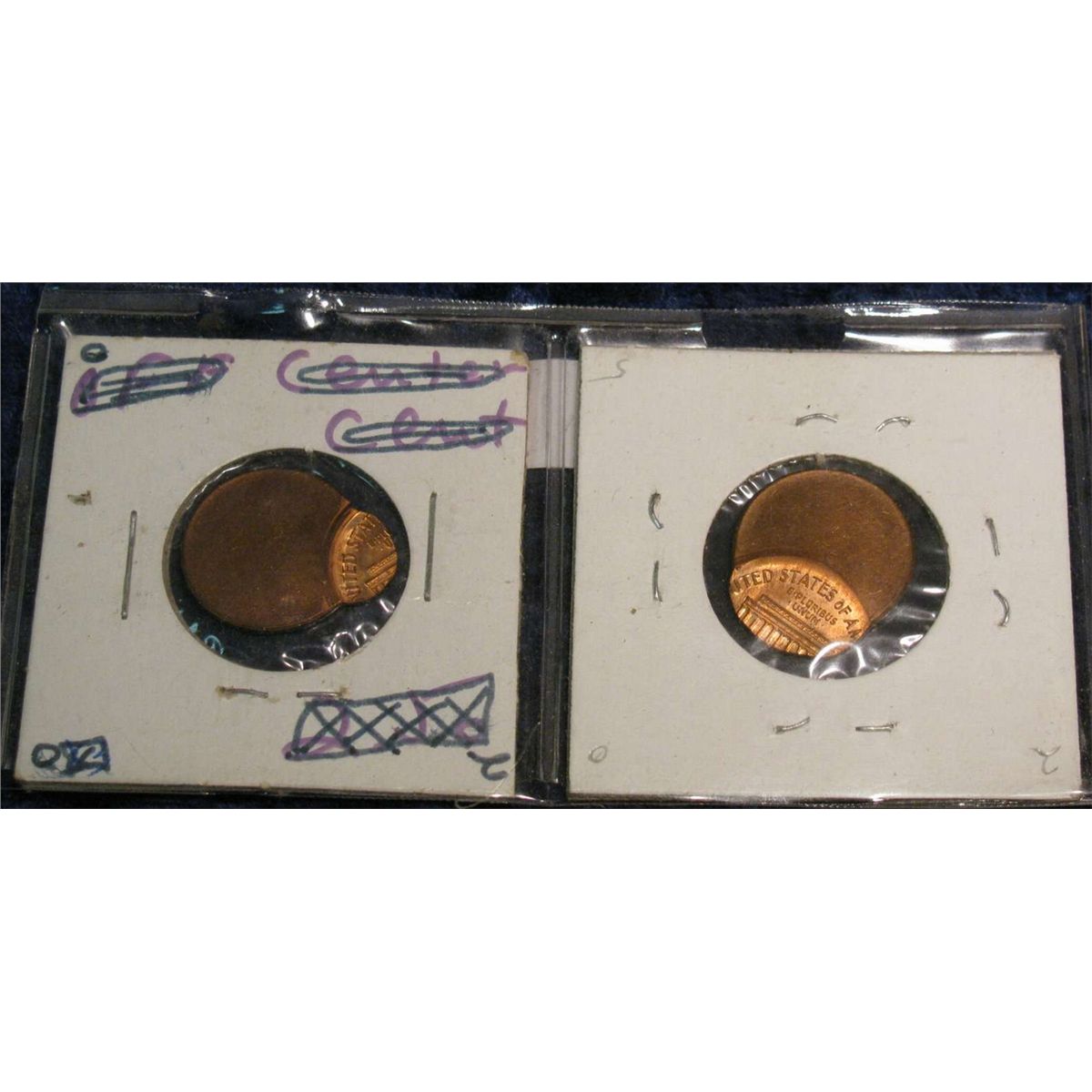 485. (2) Off-center Lincoln Cent Mint Errors.