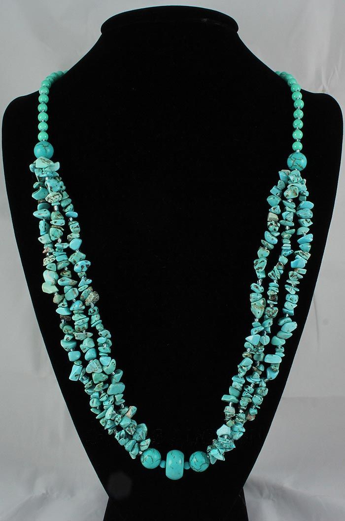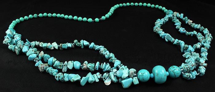 485.51CTW FASHION CHUNKY TURQUOISE NECKLACE **|**|** 30 INCHES 3ROW DESIGN CHUNKY TURQUOISE BEADS NECKLACE ; MSRP: $300