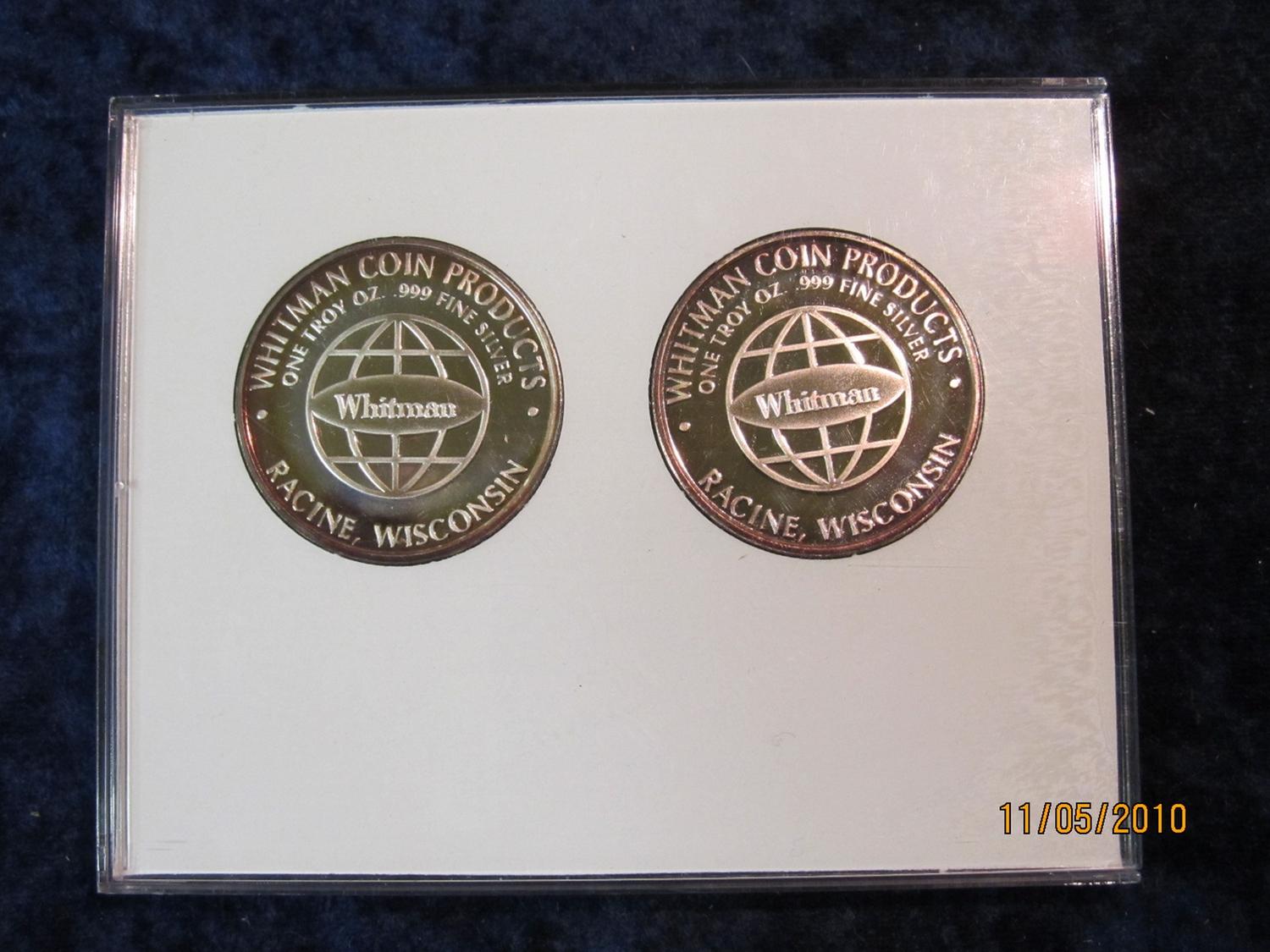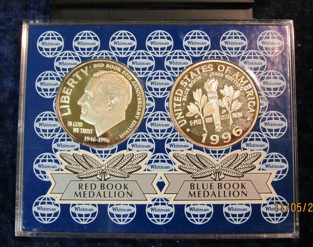 485. Red Book & Blue Book One Troy Ounce .999 Fine Silver Medallions. Proof. This pair depicts the obverse and reverse of the Roosevelt Dimes. (2 ounces total)