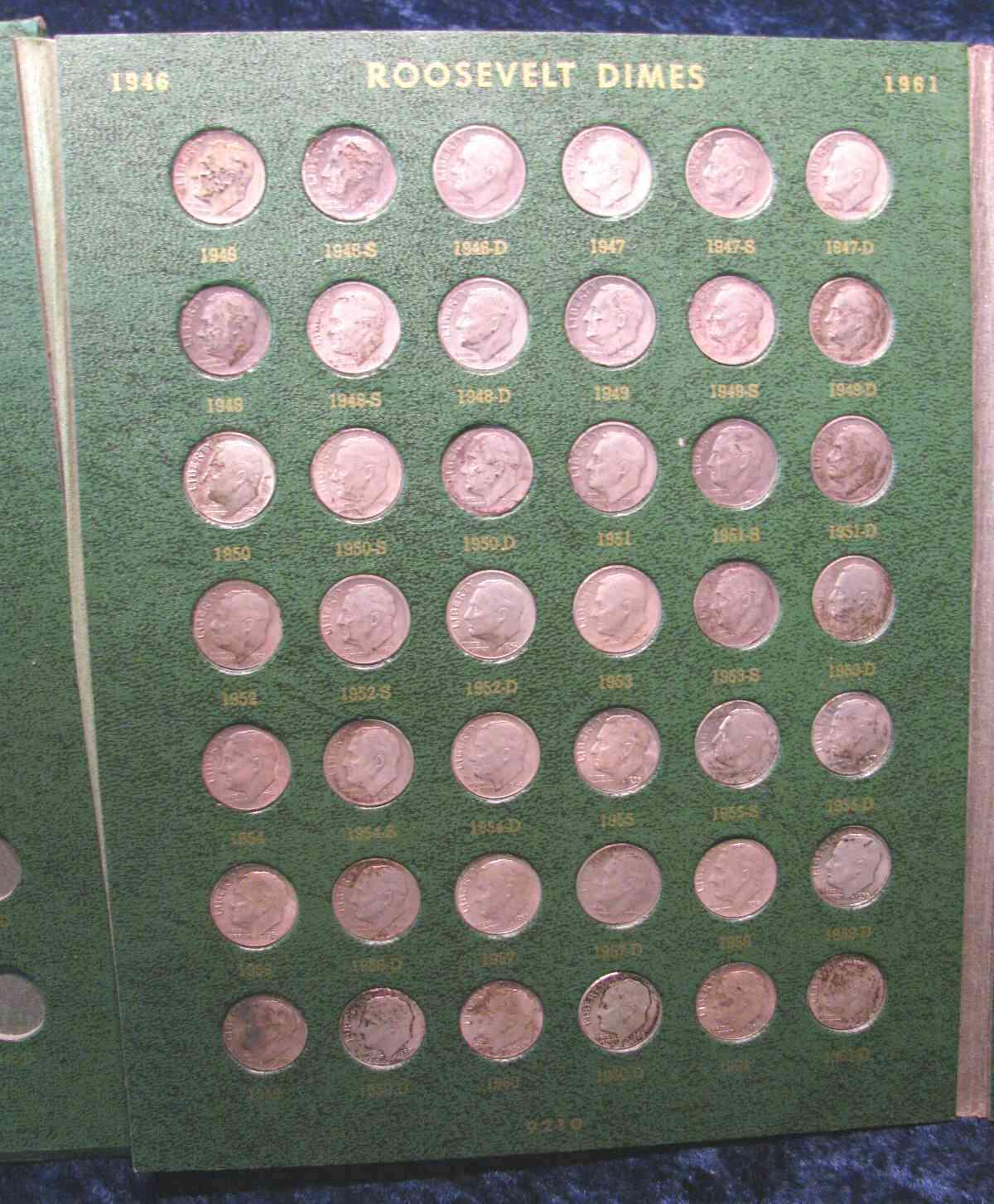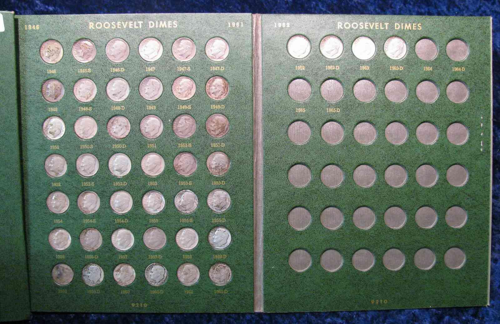 486. 1946-63 Complete Set of Roosevelt Dimes in a Whitman Deluxe Folder. (46 coins) Grades up to AU.