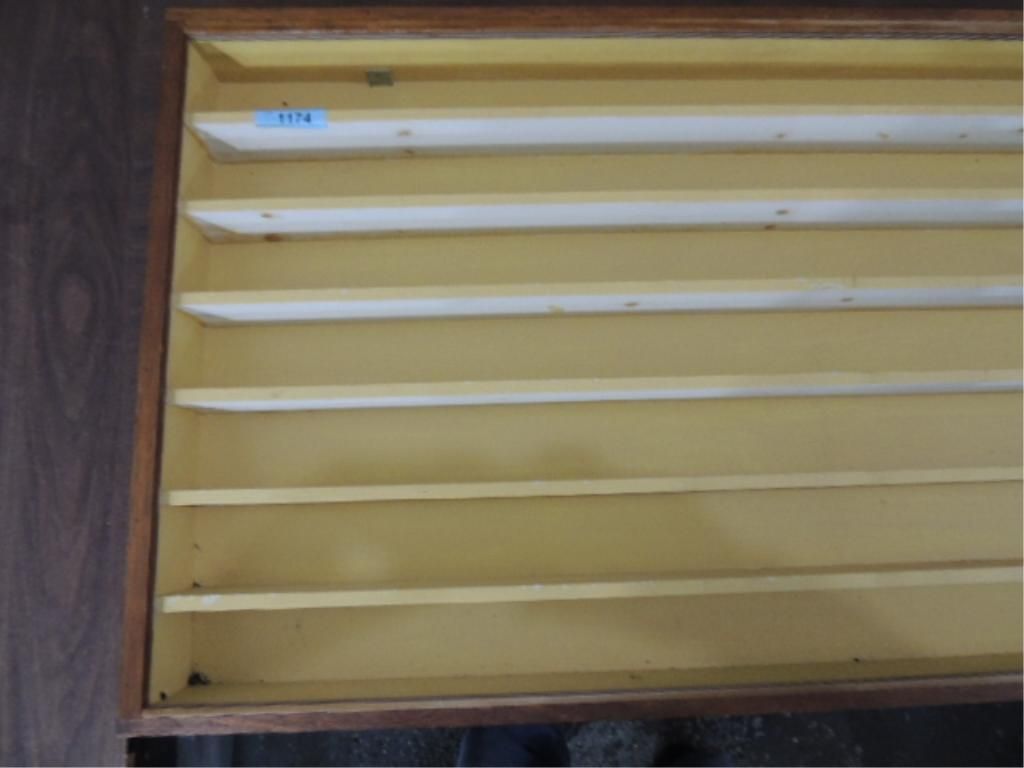 48X26, 7 SHELF HAND CRAFT WALL MOUNT DISPLAY CASE. AS SHOWN. VIEW PICTURE FOR DETAIL.